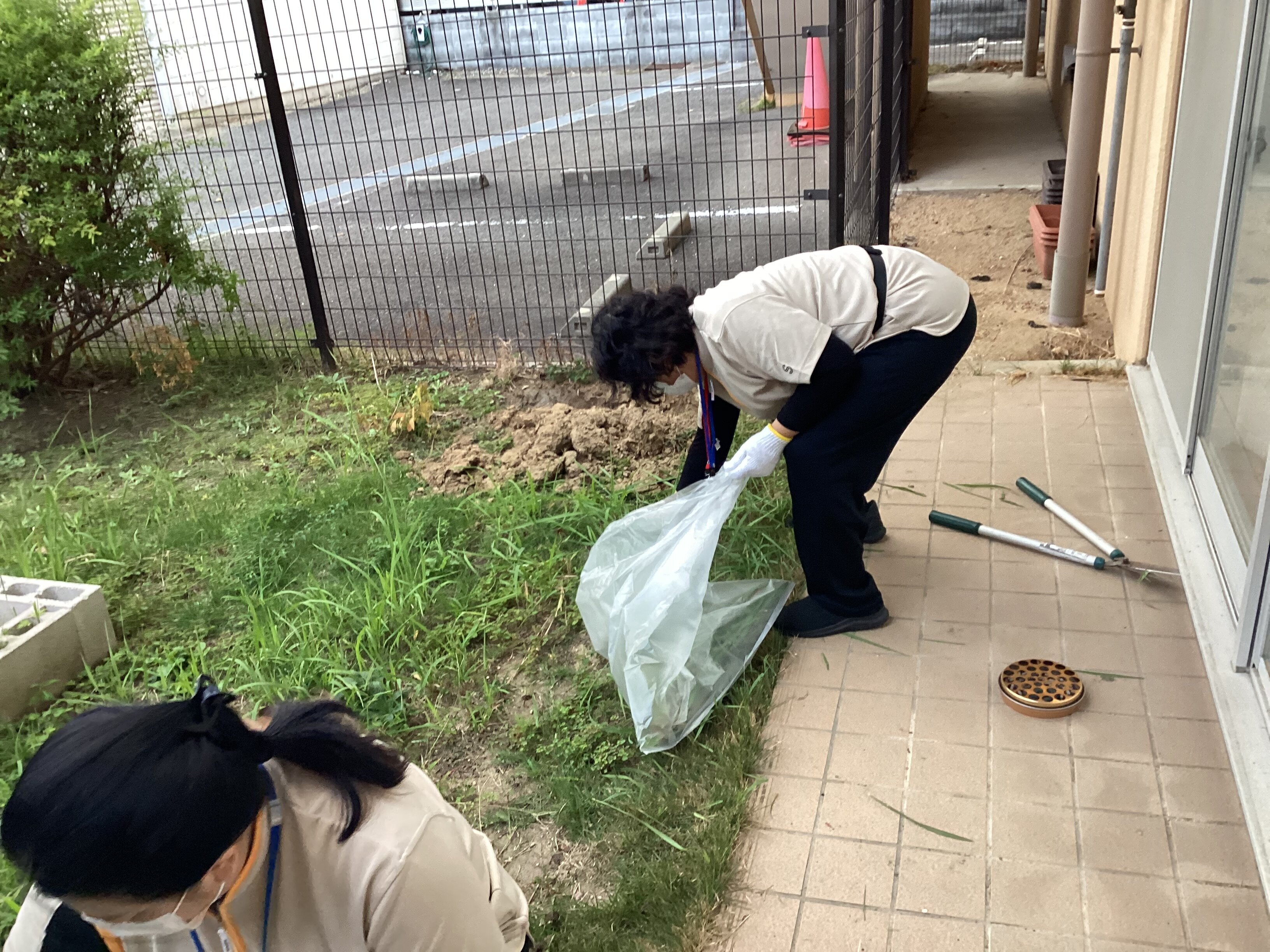 施設では館内はもちろんの事、外周も美しくをモットーに清掃大作戦を行っています。スタッフ一丸となり役割を決め清掃に当たっています。