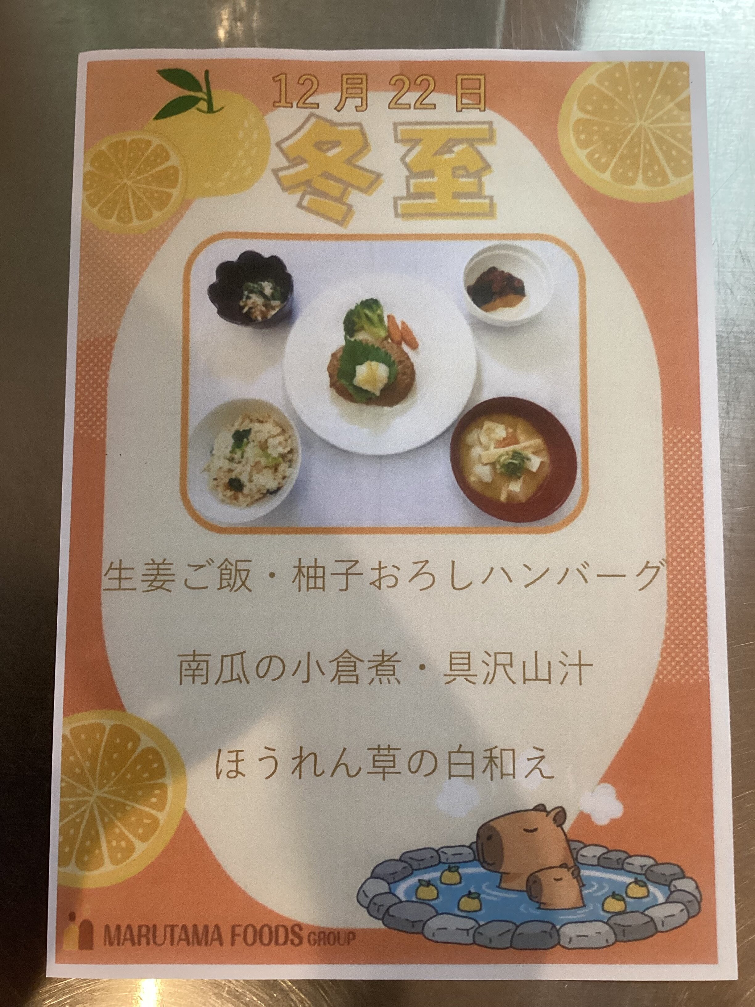 11月の変わり湯では、みかん湯に入って頂き好評でしたが、15キロのみかんを入居様とスタッフで平らげ、皮を乾燥させるために野外に出したり入れたり初心者には大変な作業でした(*^^*)