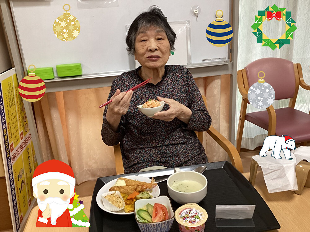 チキンライスやクリスマスプレートに乗ったおかずをみて少しだけクリスマス気分味わえると仰られていました笑笑