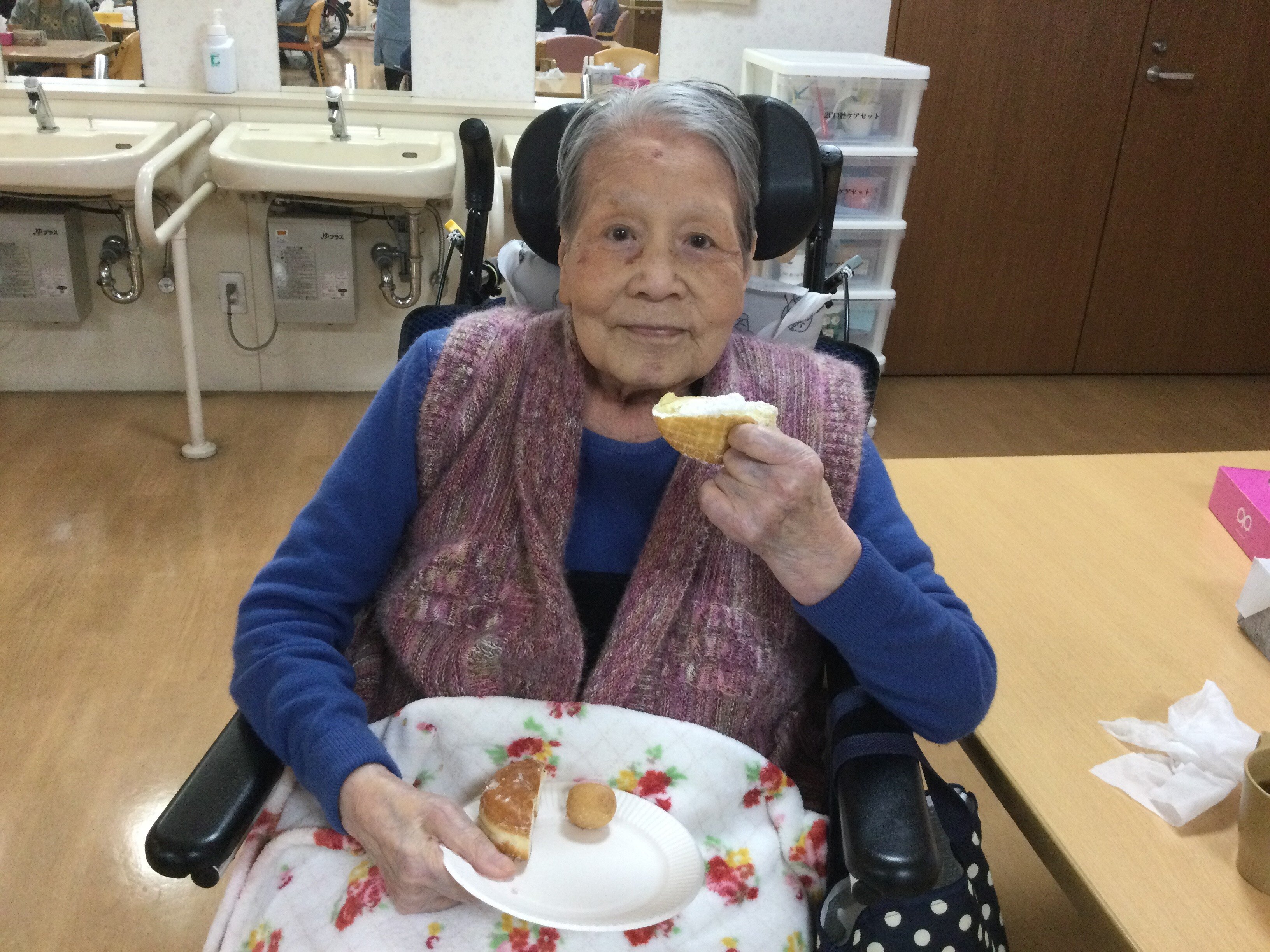 3月のレクリエーションで、ミスタードーナツのドーナツバイキングを行いました。