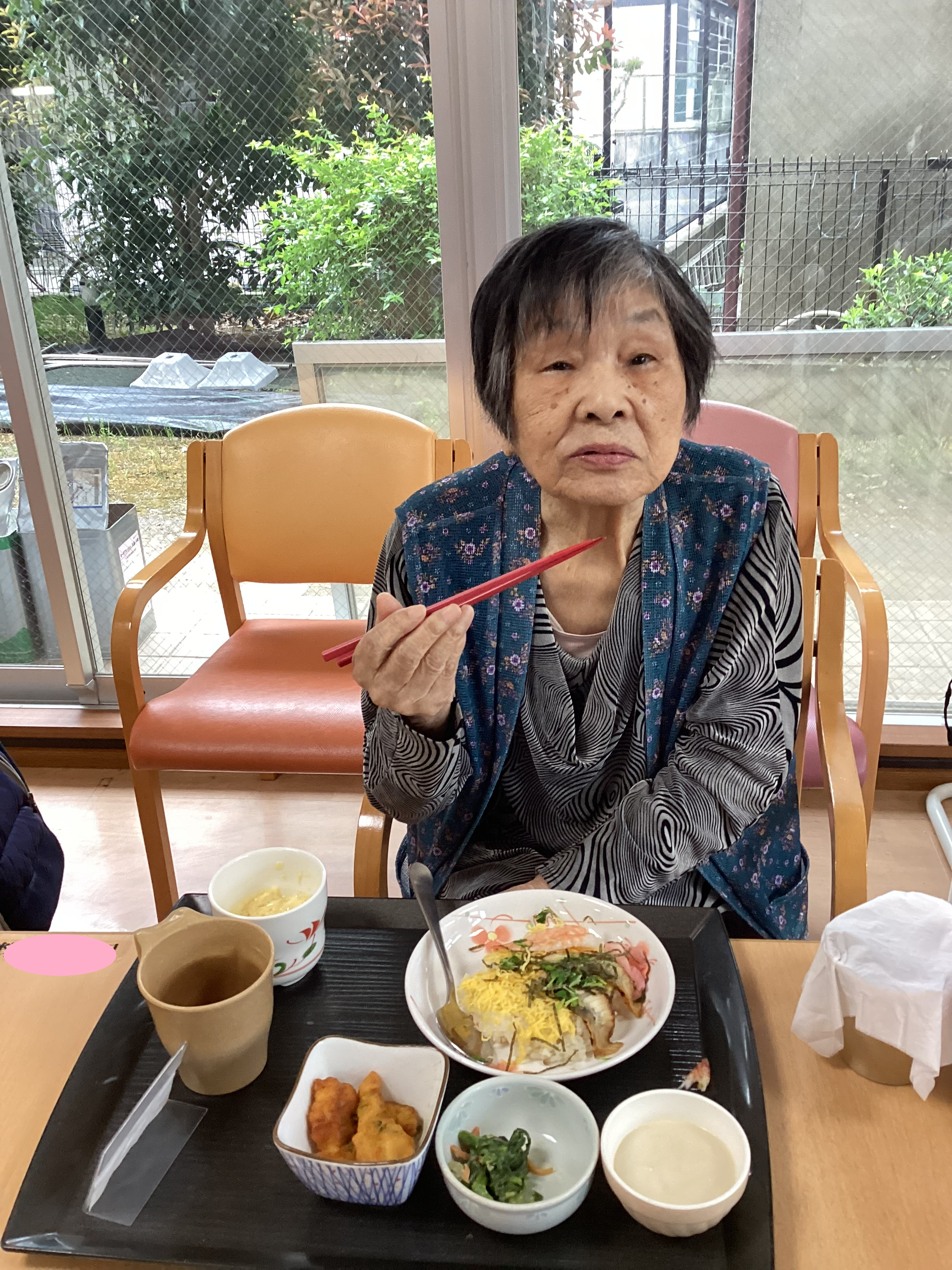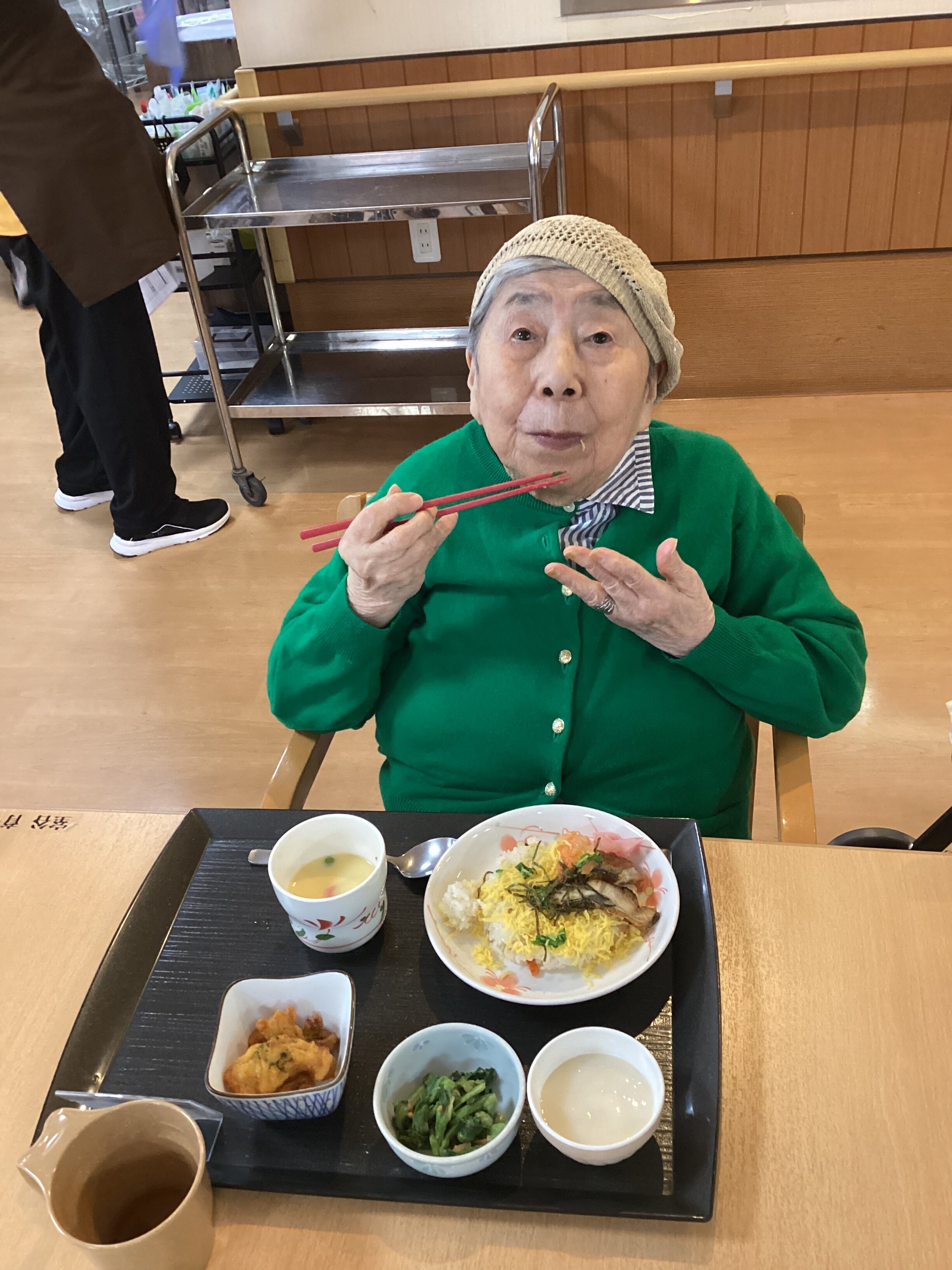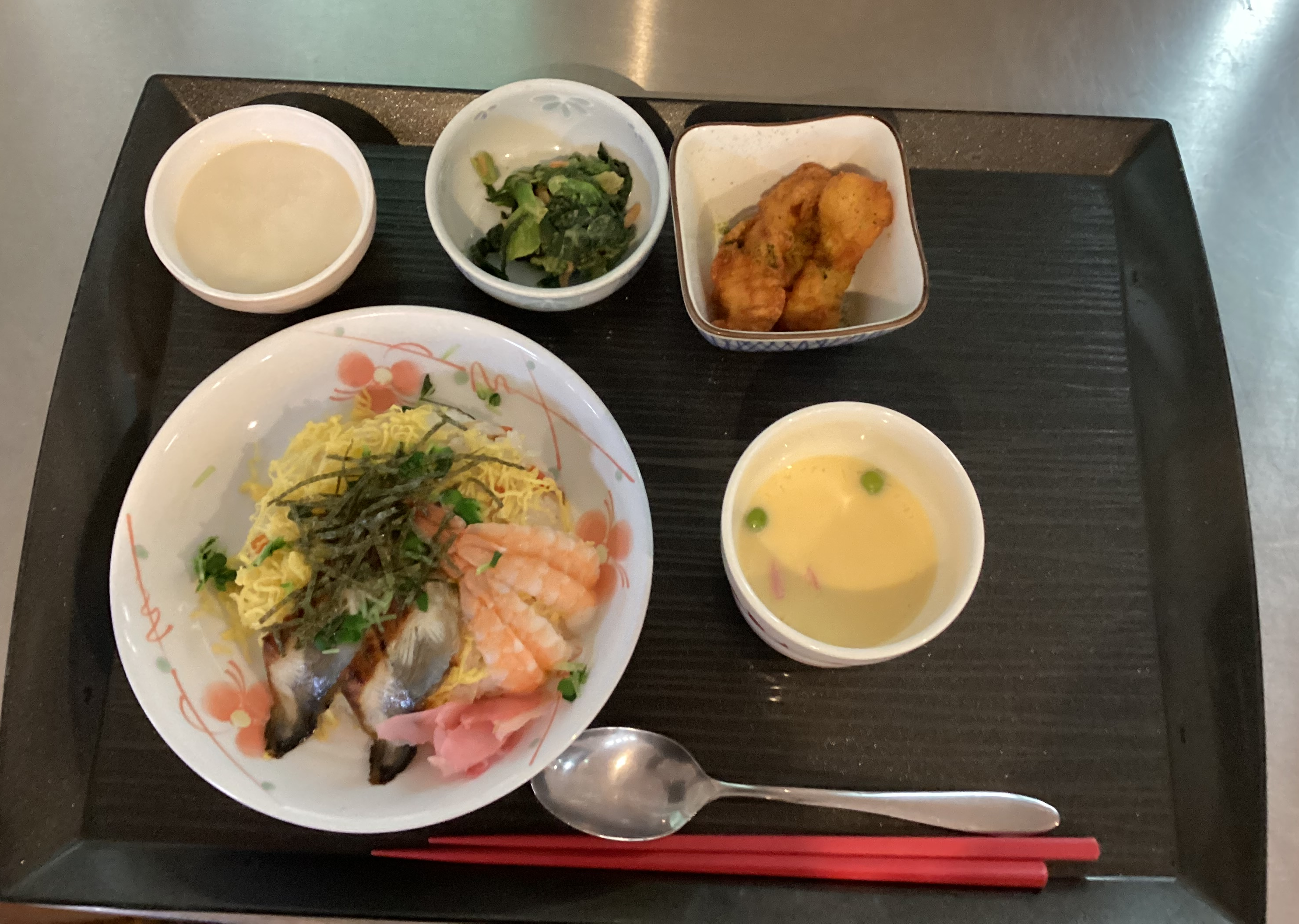 五目ずし・とり天・茶碗蒸し・菜の花の胡麻和え