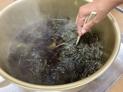 よもぎを煮ている時はとてもいい匂いが漂っていました!