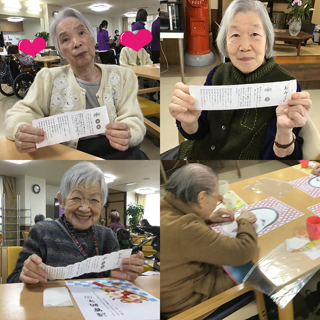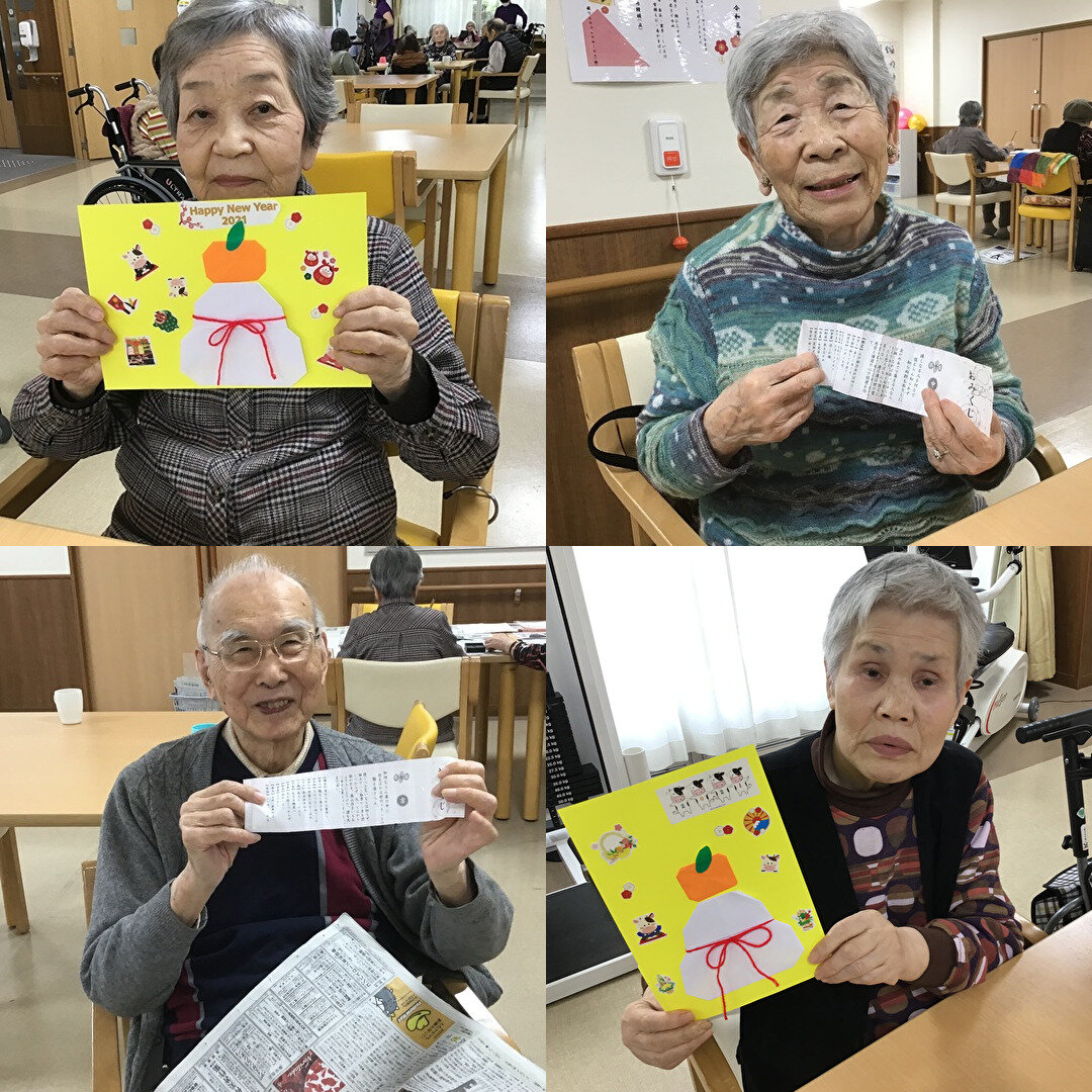 「紙で鏡餅を作ったよ~」 「おみくじを引いたよ~」 「福笑いをしたよ~」