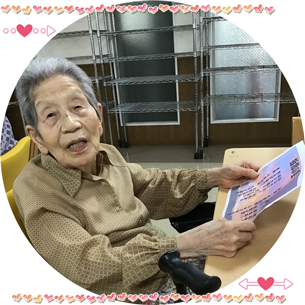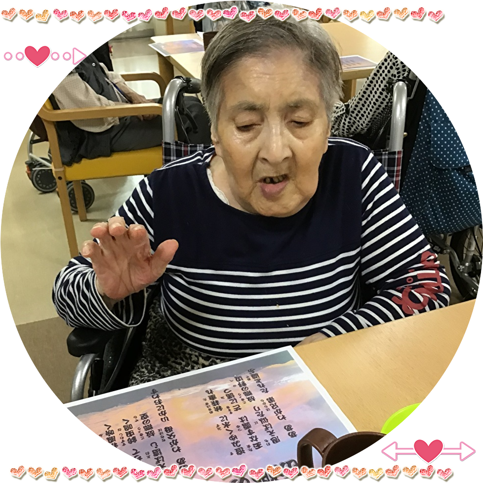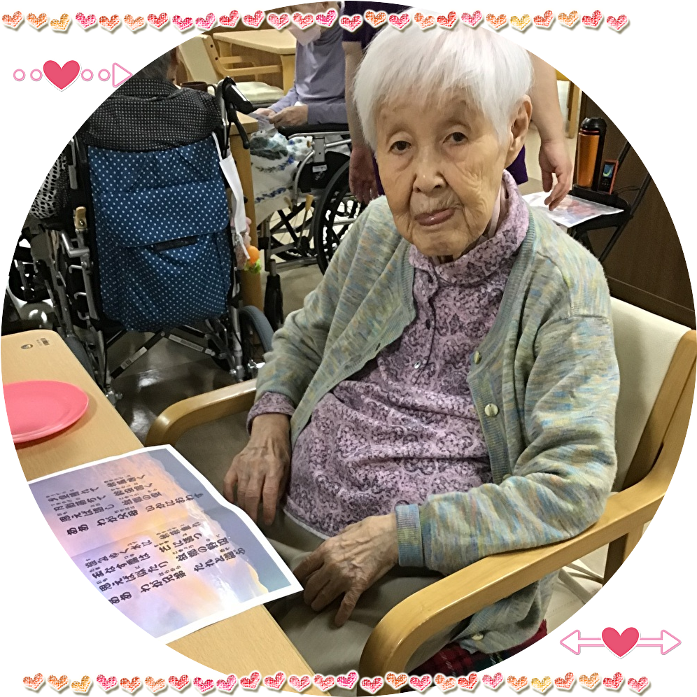 めざといご入居者は、すぐに歌詞カードを見て、「え、これ日本の曲じゃないの?」とおしゃっておられました。