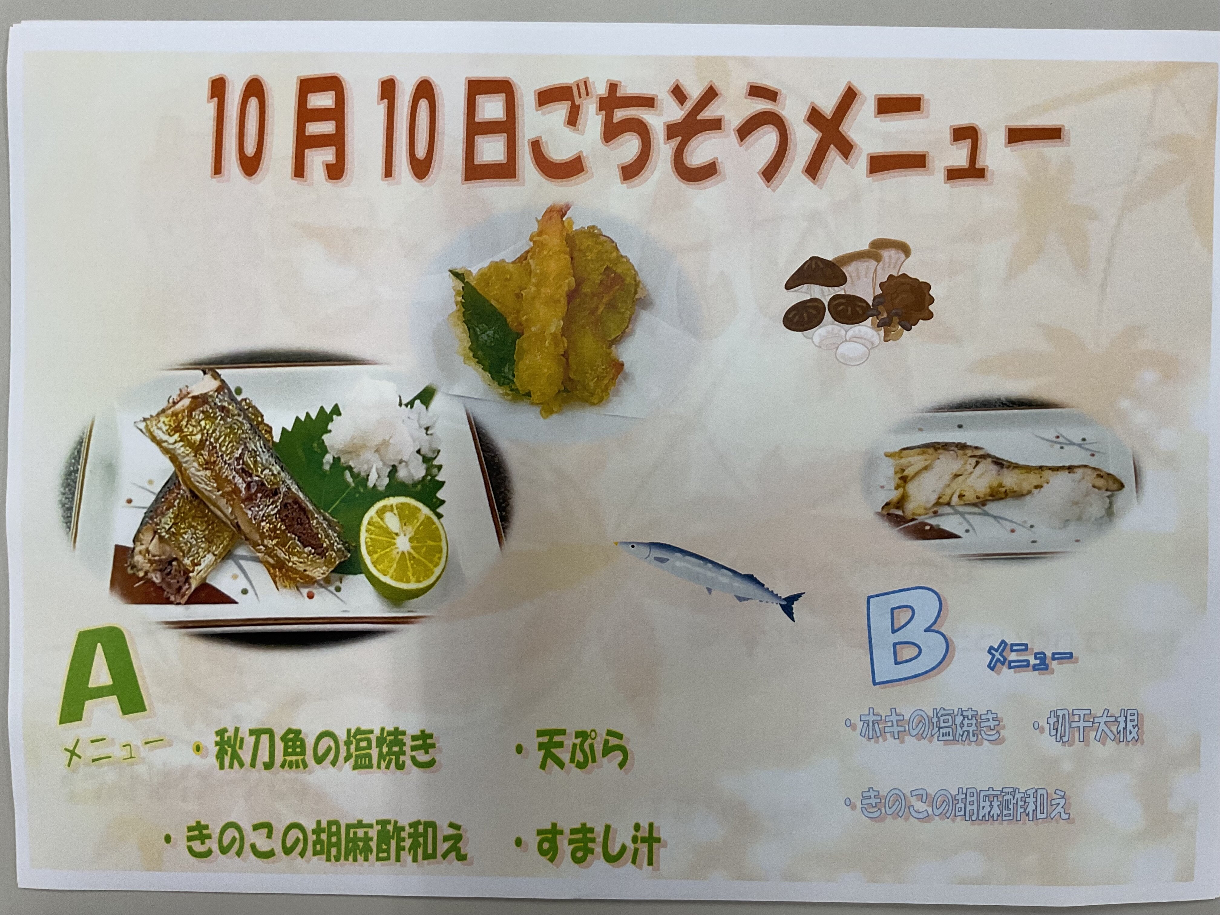 昨日10月6日~のお食事(献立表)のご紹介させていただきます☆彡