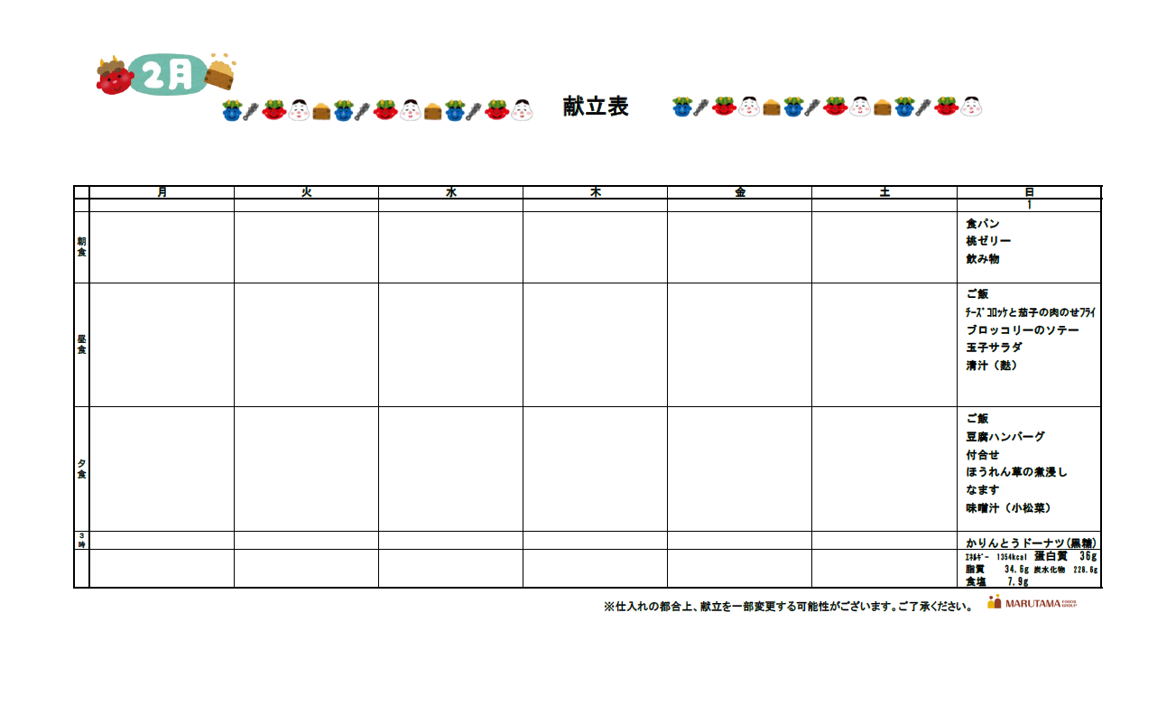 2月1日献立表です(^O^)/