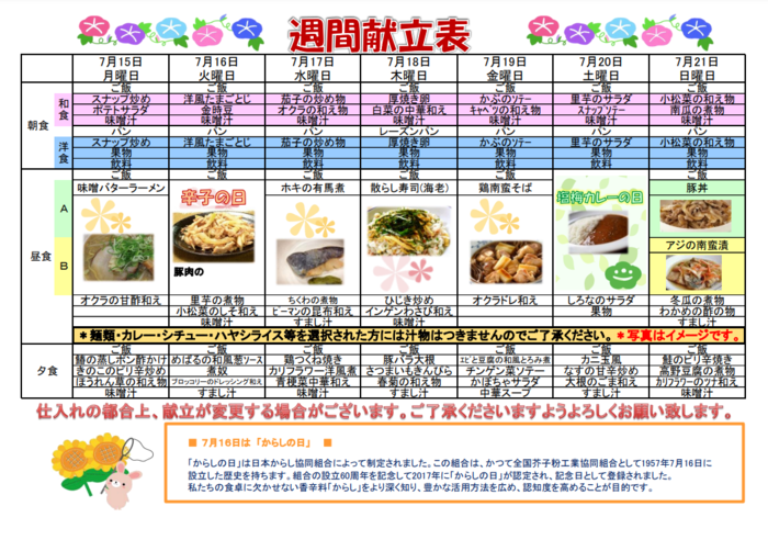 いつも和食・洋食・中華などなど、とっても種類が豊富なメニューを提供させて頂いており