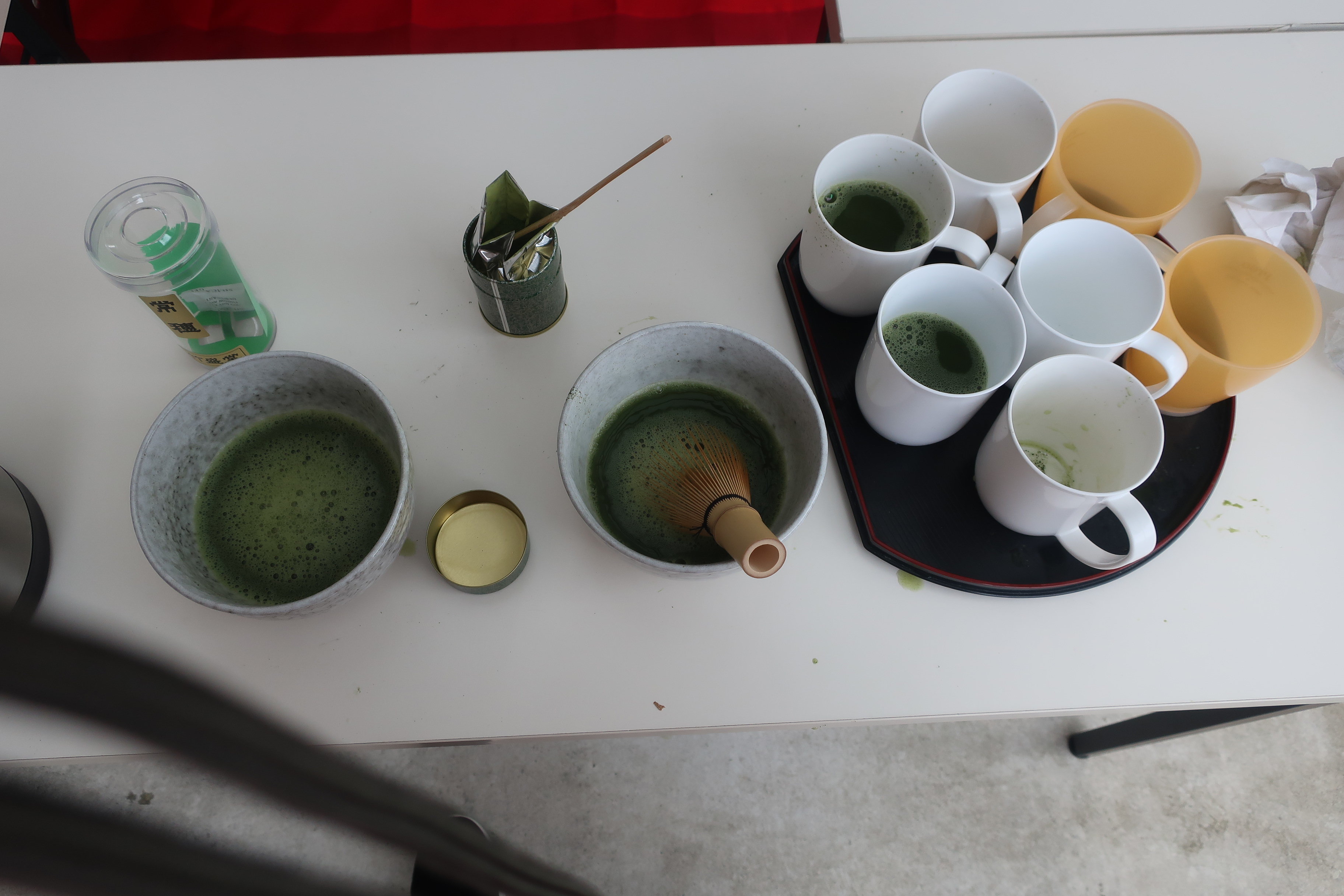 チューリップがキレイに咲いていますね。お抹茶とお菓子で心も体も和みます。