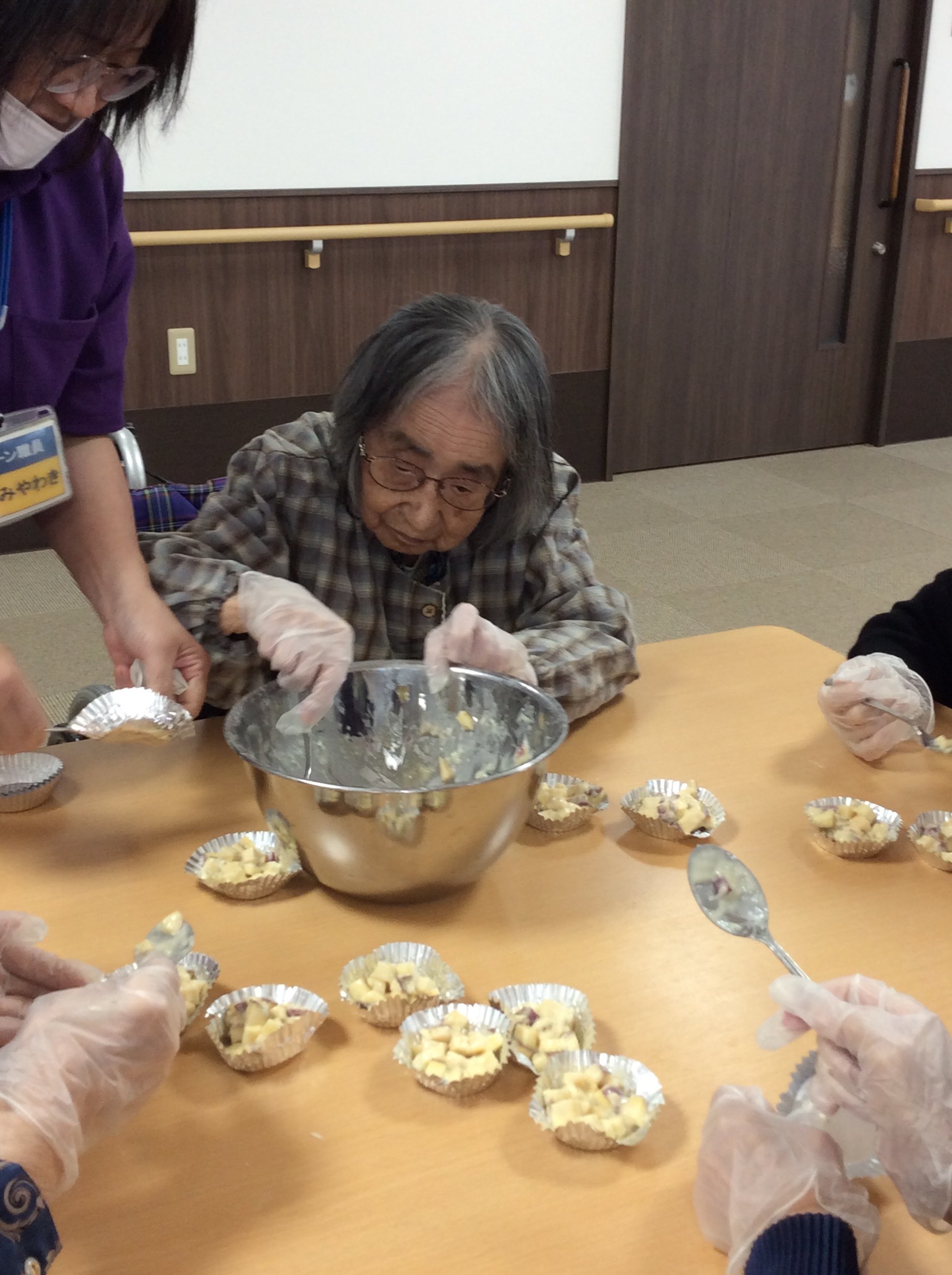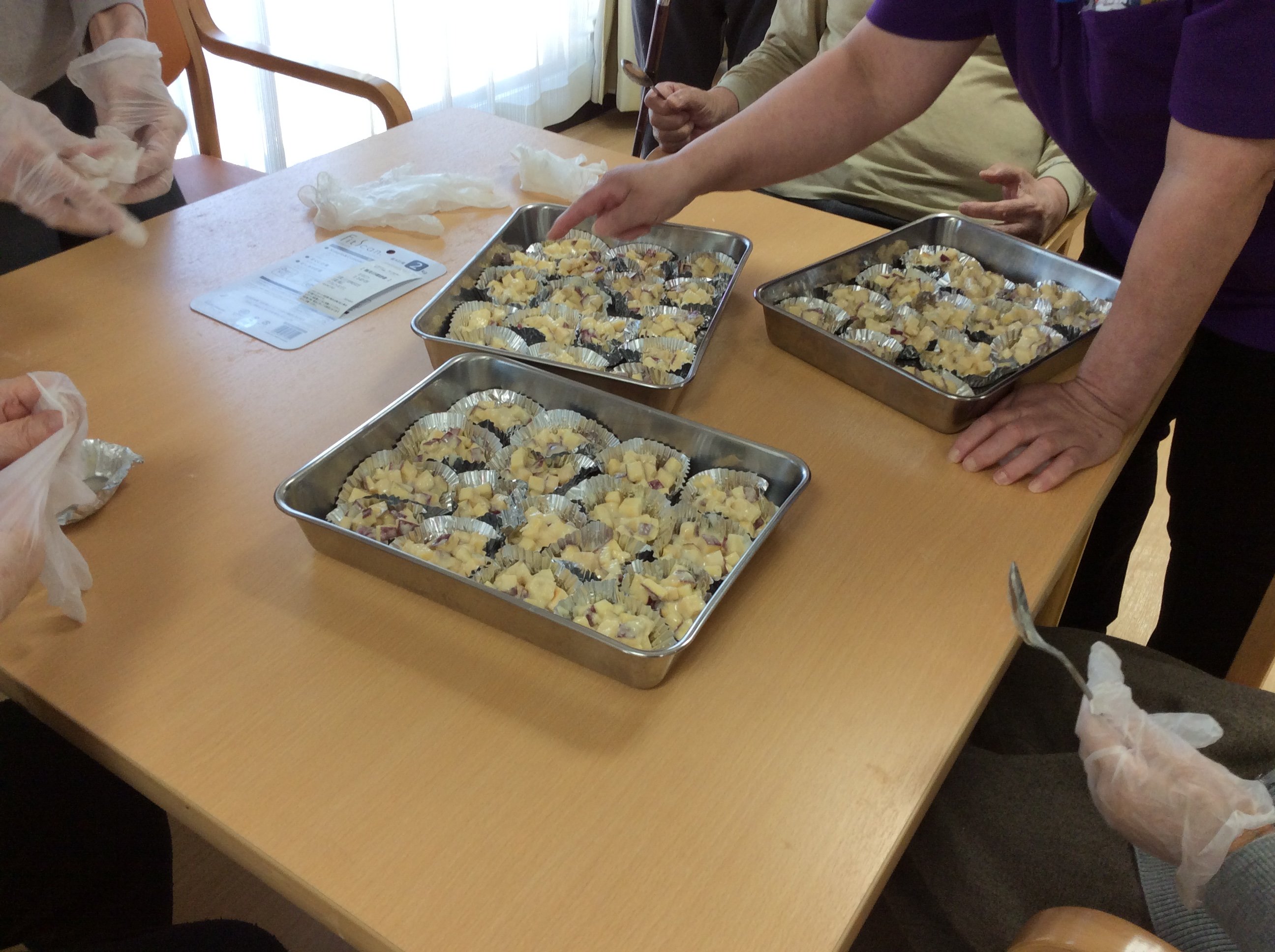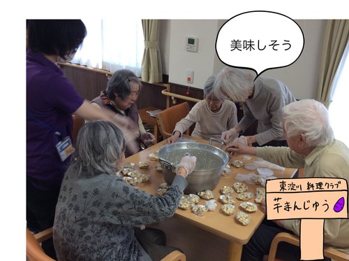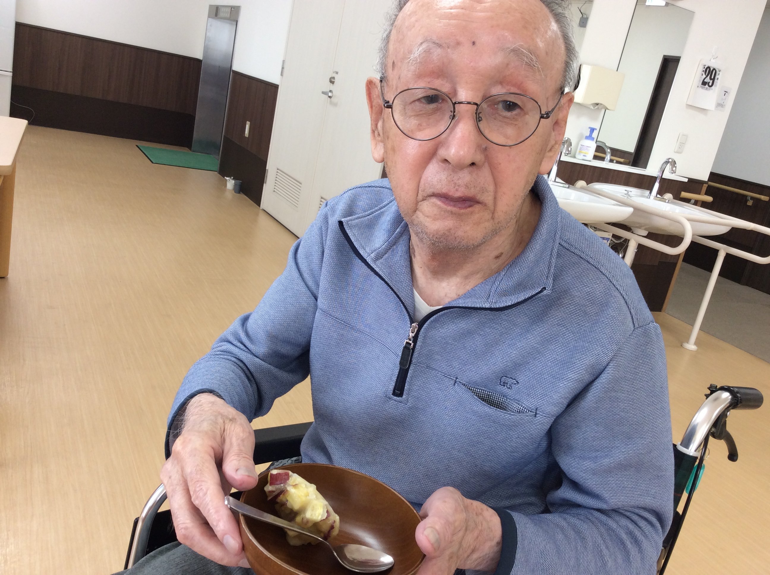 食堂に集まっていただき、数名の方と一緒に芋まんじゅうを作ります。
