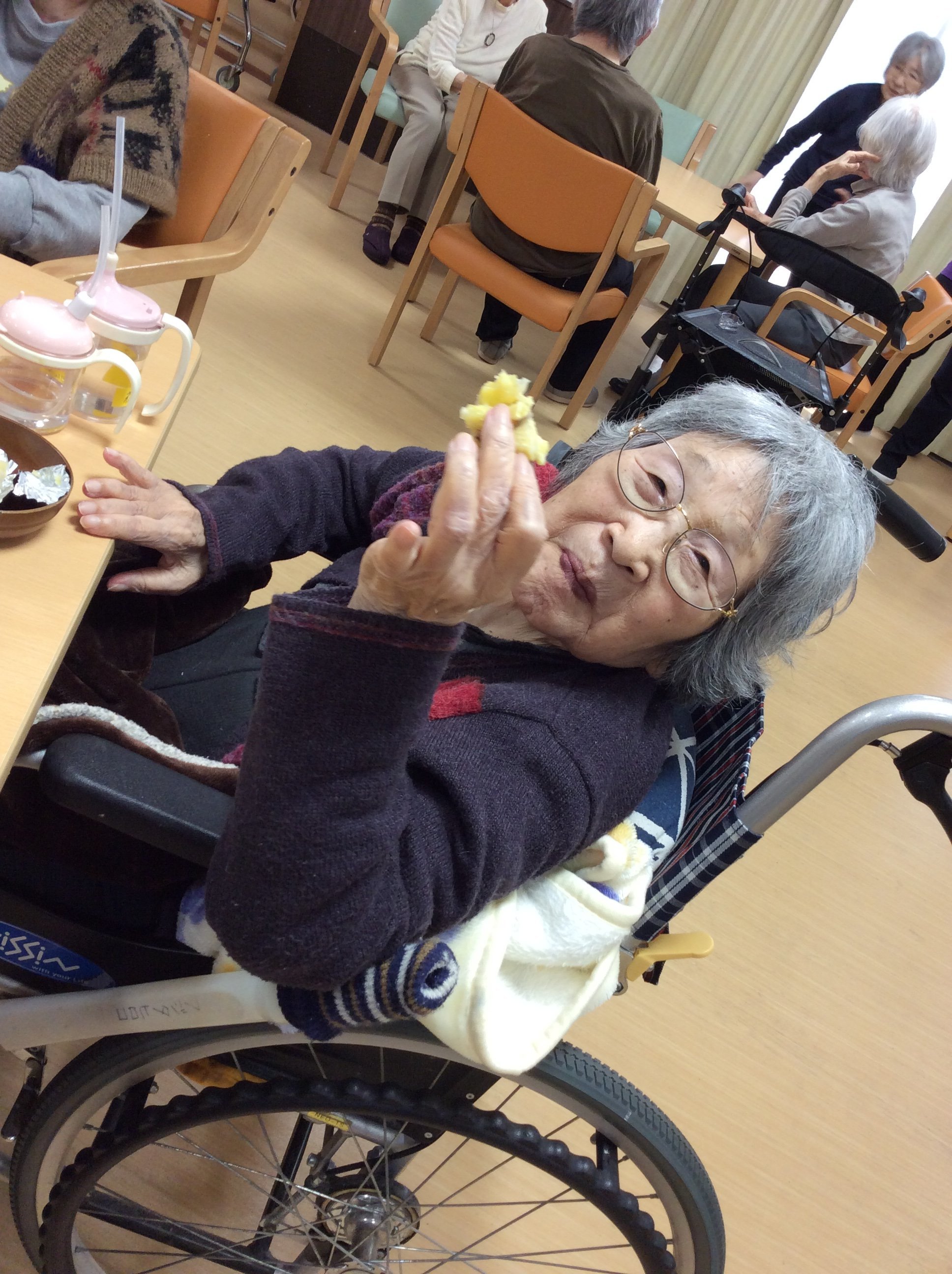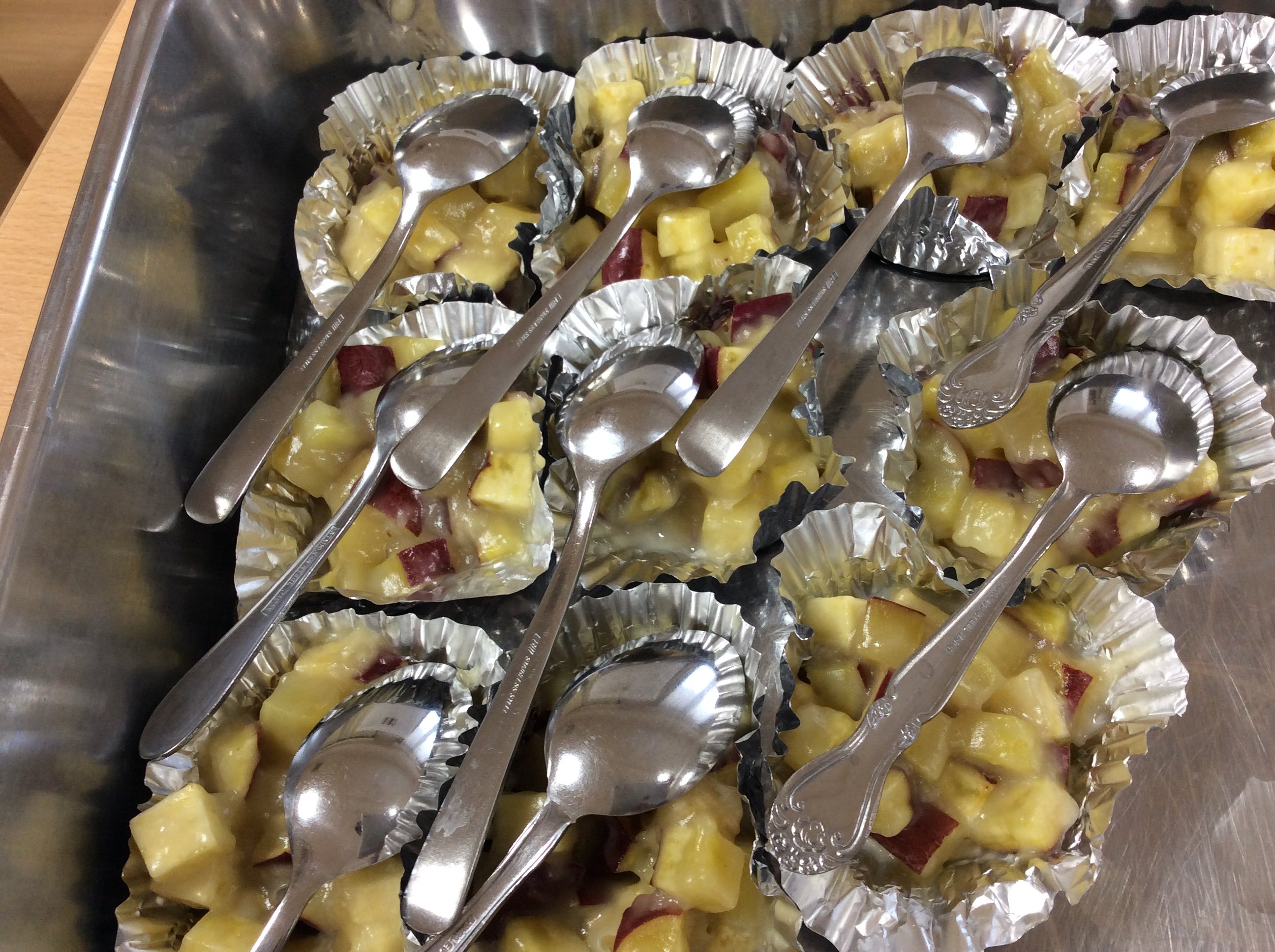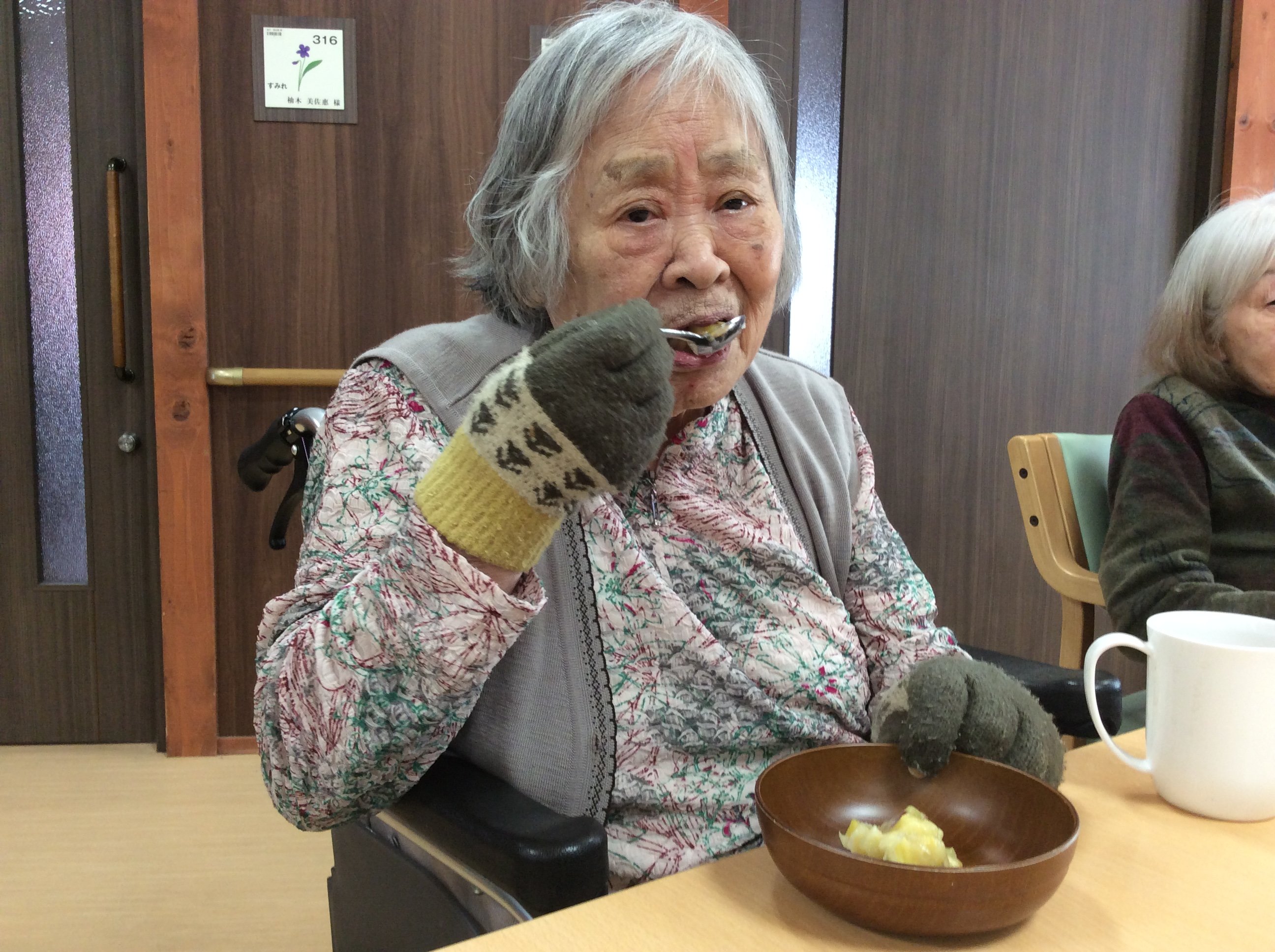 食堂に集まっていただき、数名の方と一緒に芋まんじゅうを作ります。
