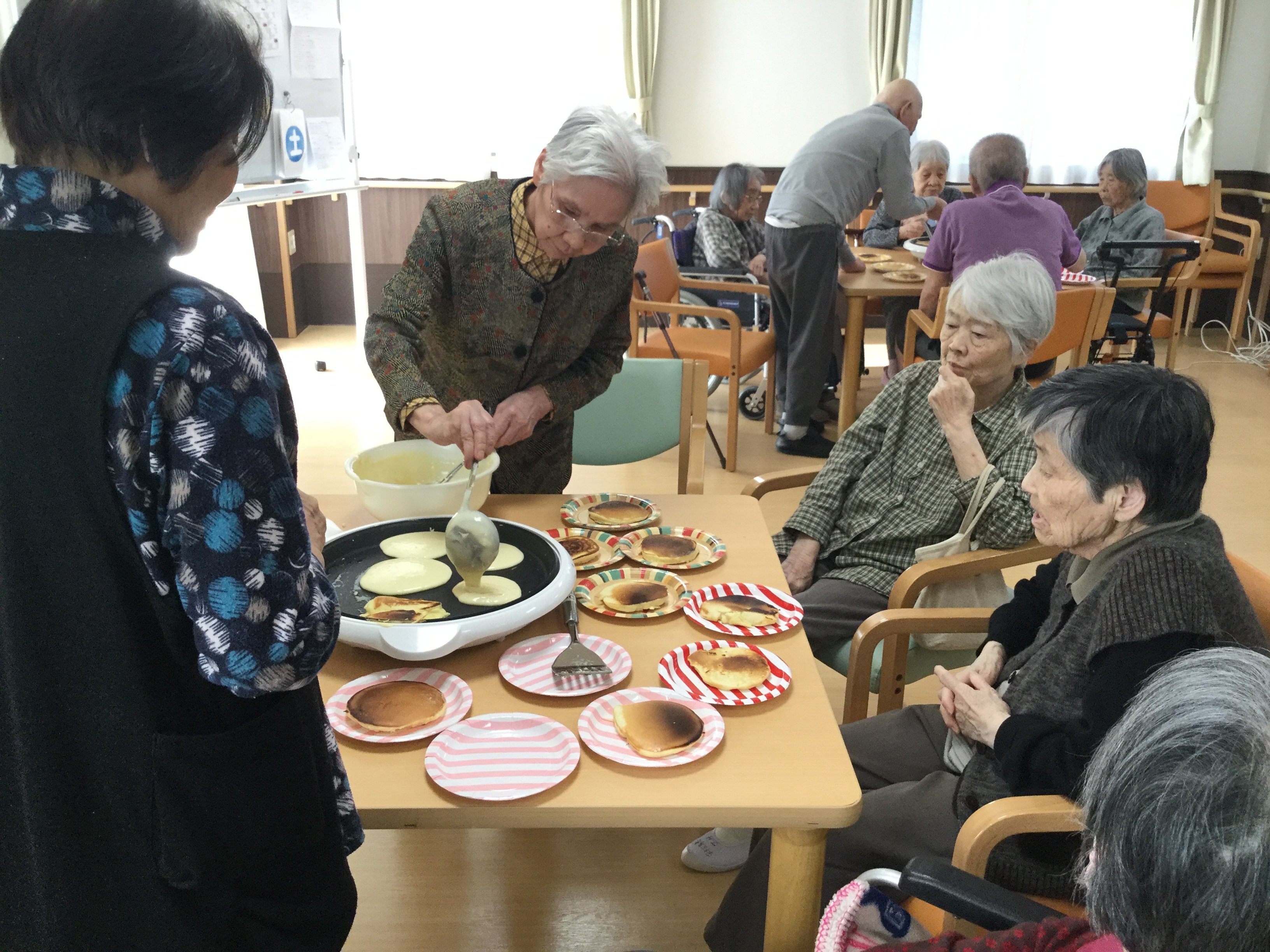 ご入居者と一緒にホットケーキを手作りしましたのでそちらの様子を紹介します
