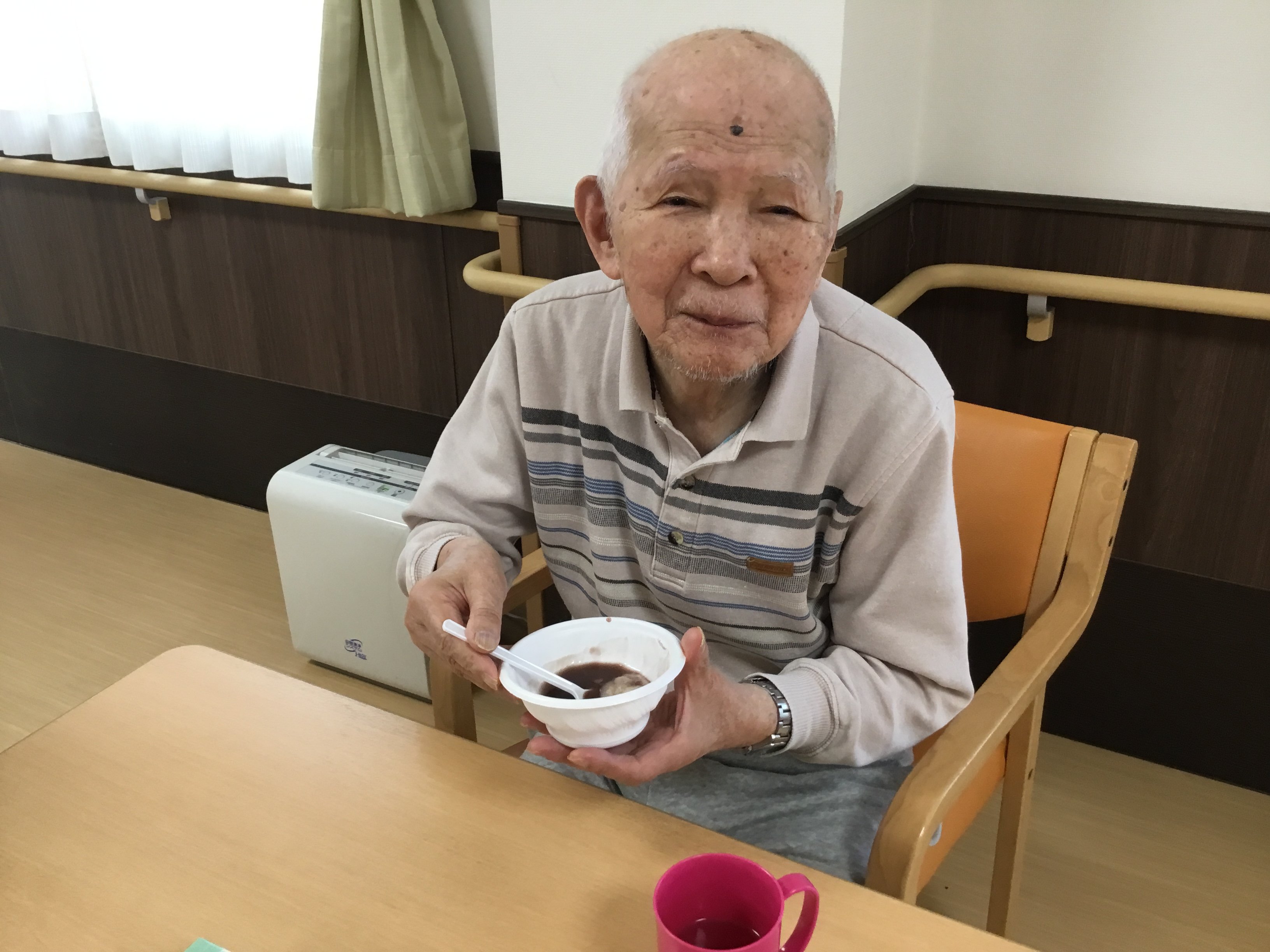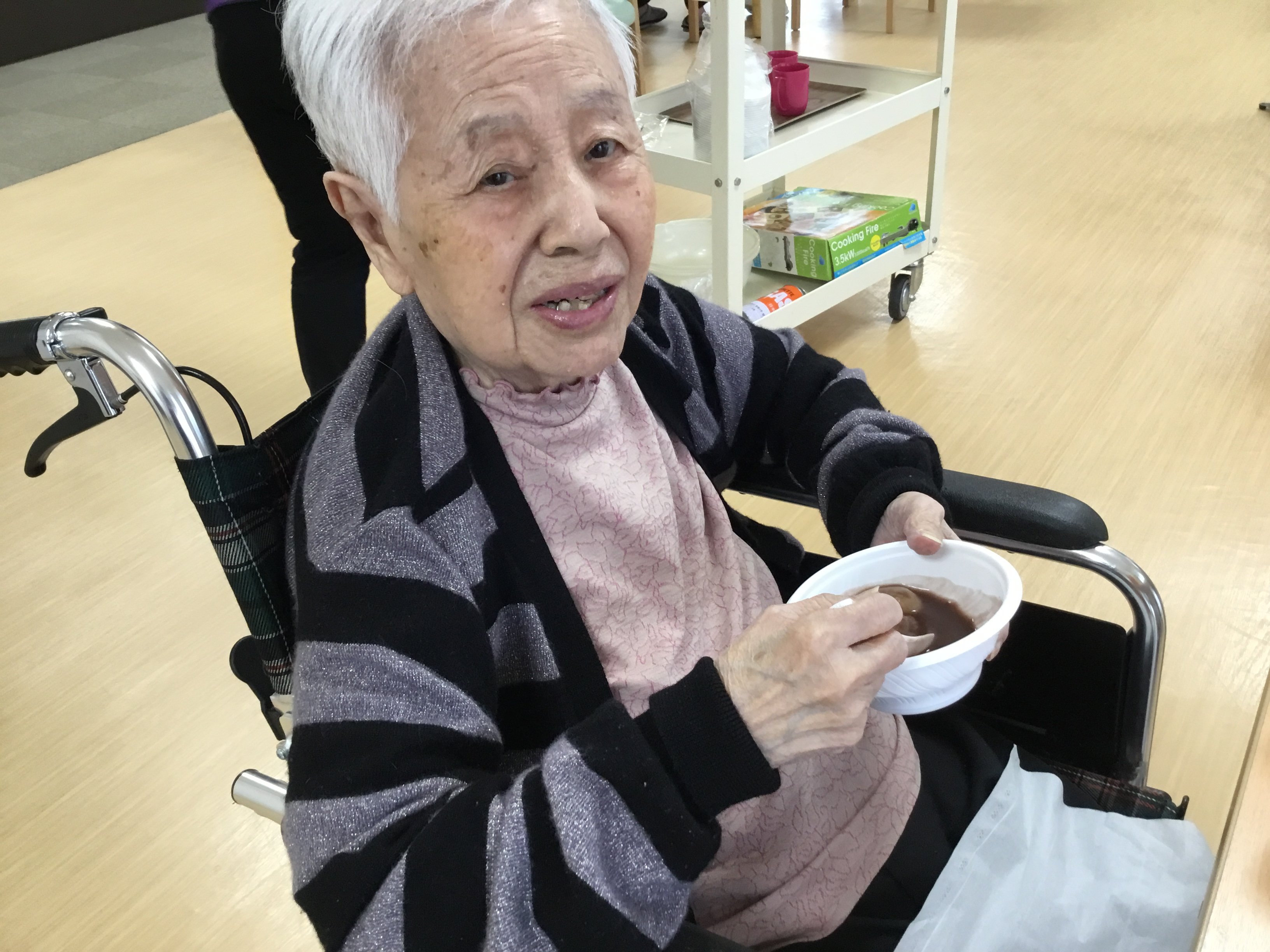 「温かくておいしいね」「おしるこ食べれるなんて思わなかった」