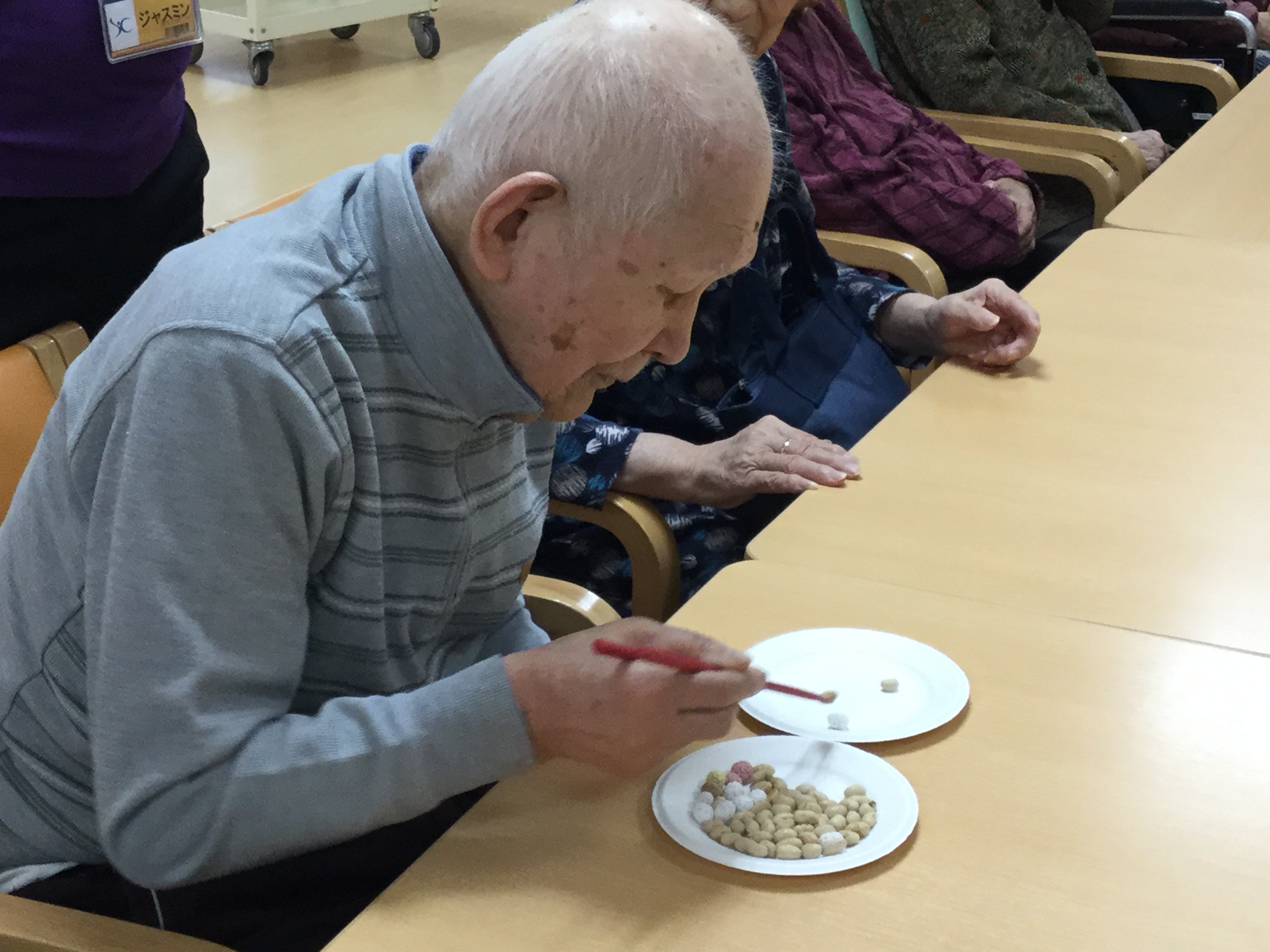 豆つかみは認知症の予防や脳の刺激に良いとされています。