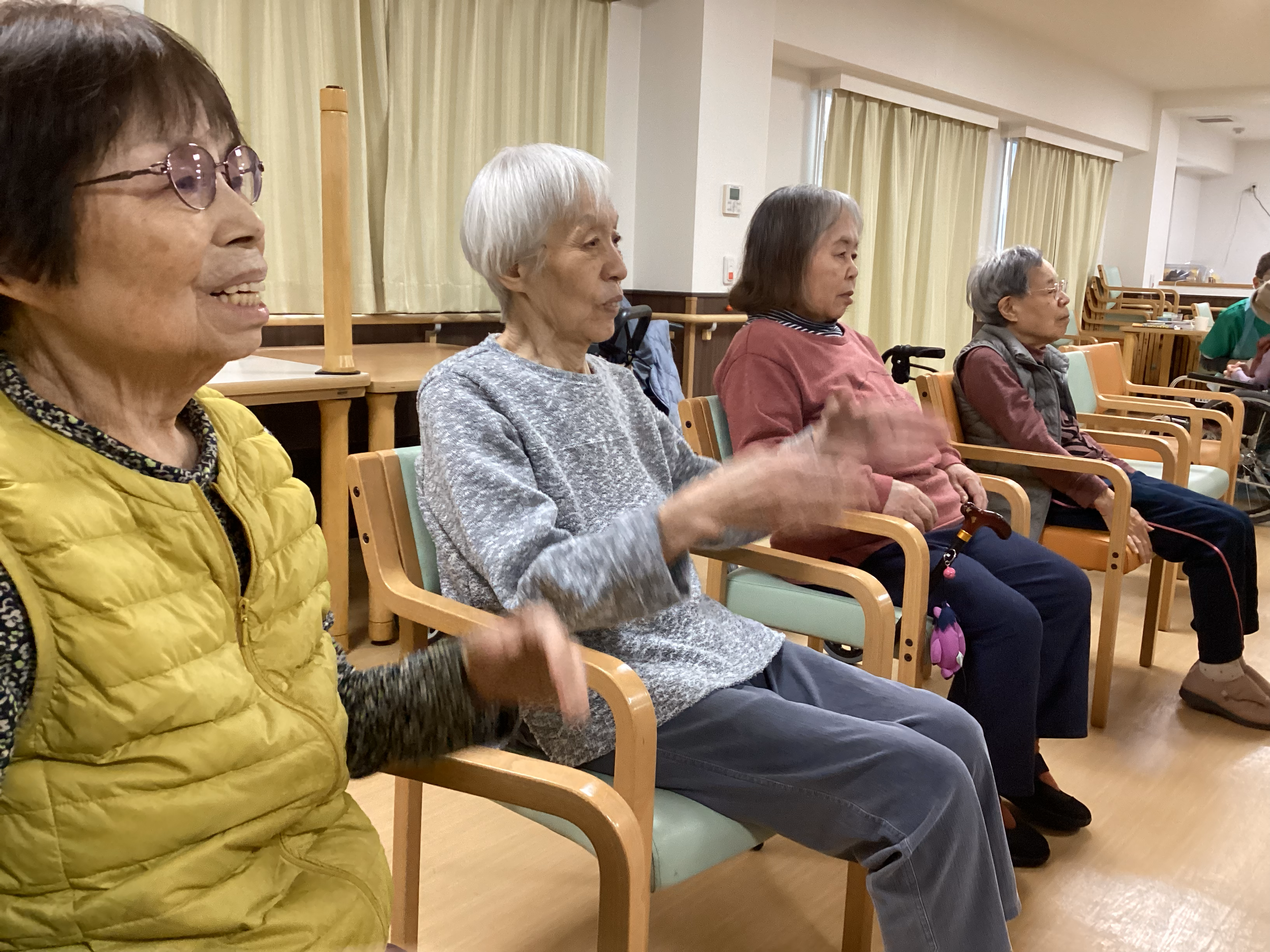 普段のレクリエーションは、介護職員が主体となって行っていますが、集団体操は機能訓練士が主体となって行っています!