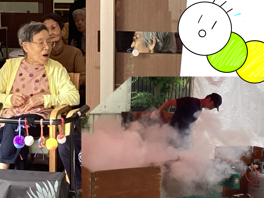 7/2当日は、生憎の曇り空で、実演時には雨が降っていました...が、玄関には多くのご入居者が、今か今かとその瞬間を見るために集まって頂けました!