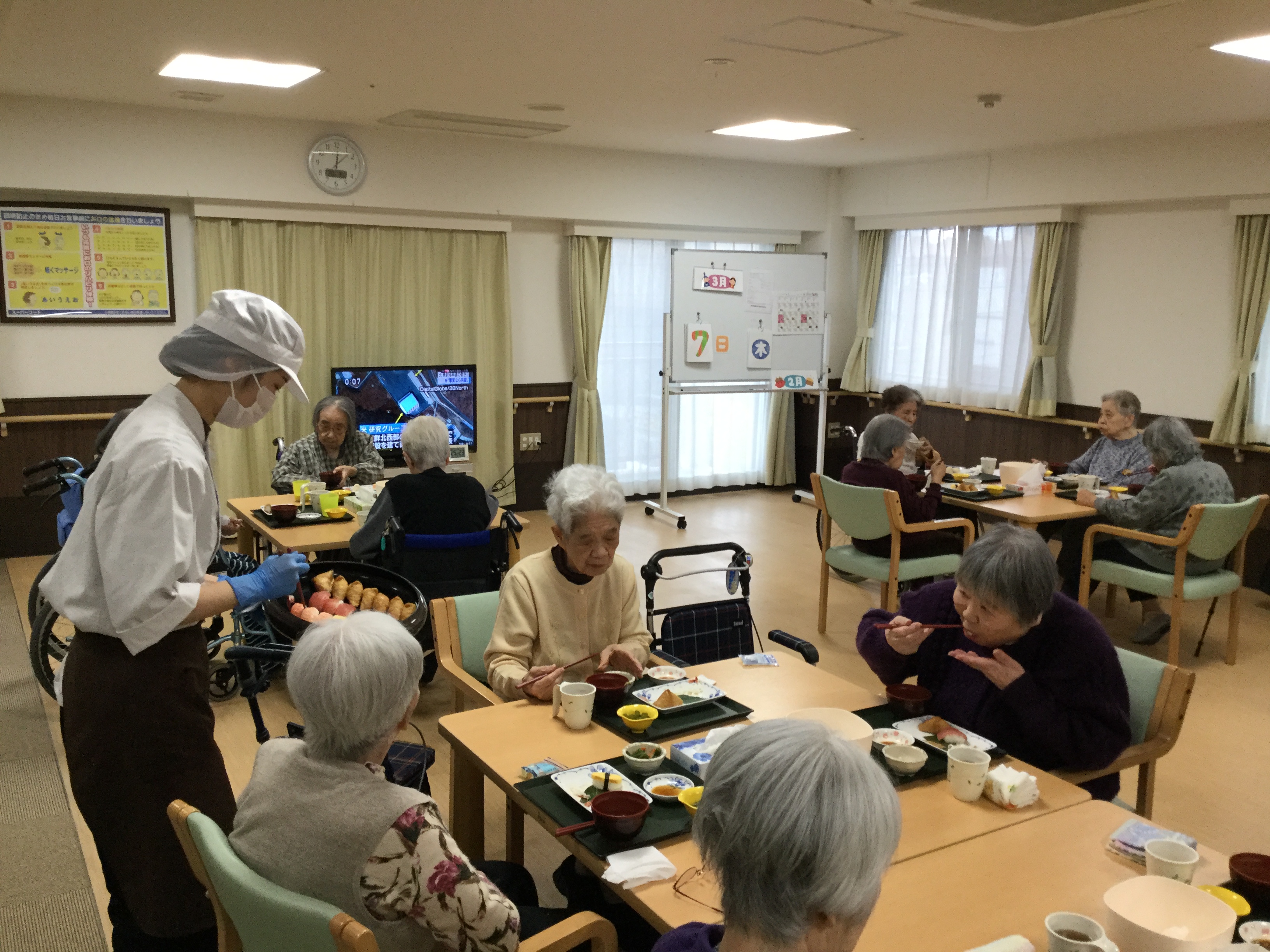 ご入居者の方々も、正しい手順を見ながら、皆さま手洗いをされています♪