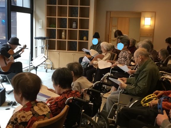 様々な曲を、ギター演奏をしながらご一緒に歌って頂き皆様とてもイキイキと歌われていました(*'▽')