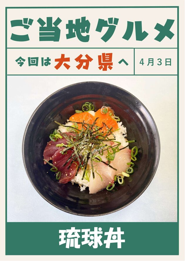 今月のご当地グルメ、大分県の「琉球丼」となっています(^O^)/