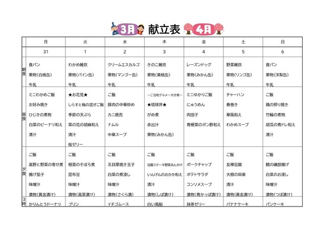 おられるのかを知って頂く為に「週間献立表」・「特別食」の内容をブログにてご覧頂け
