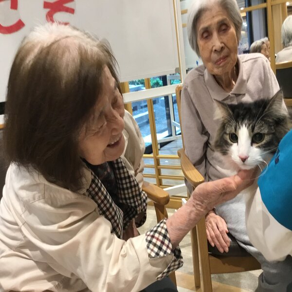 待ち時間は、返却前の本を読んだり、カラオケをしたり、ご入居者様同士で談笑され