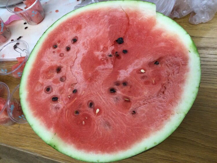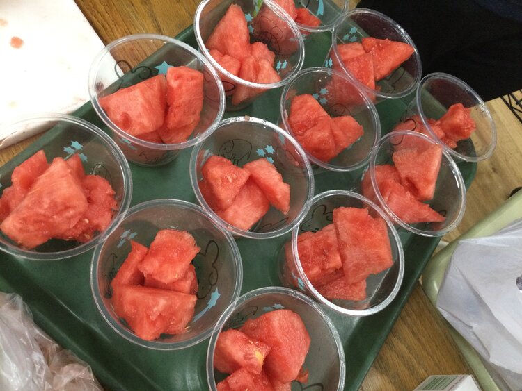 そしてこの日のおやつの時間には、前日の月祭のスイカ割りで皆さんに割っていただいた大きなスイカを提供させていただきました(((o(*゚▽゚*)o)))♡