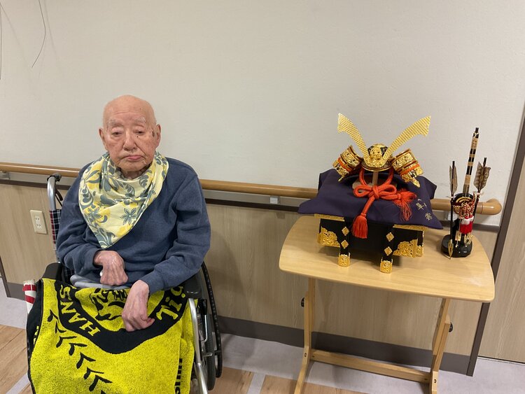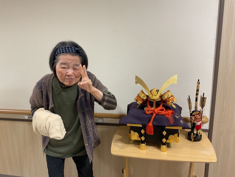 本日は、ご入居者様と兜を一緒に撮影した様子をお届けします!