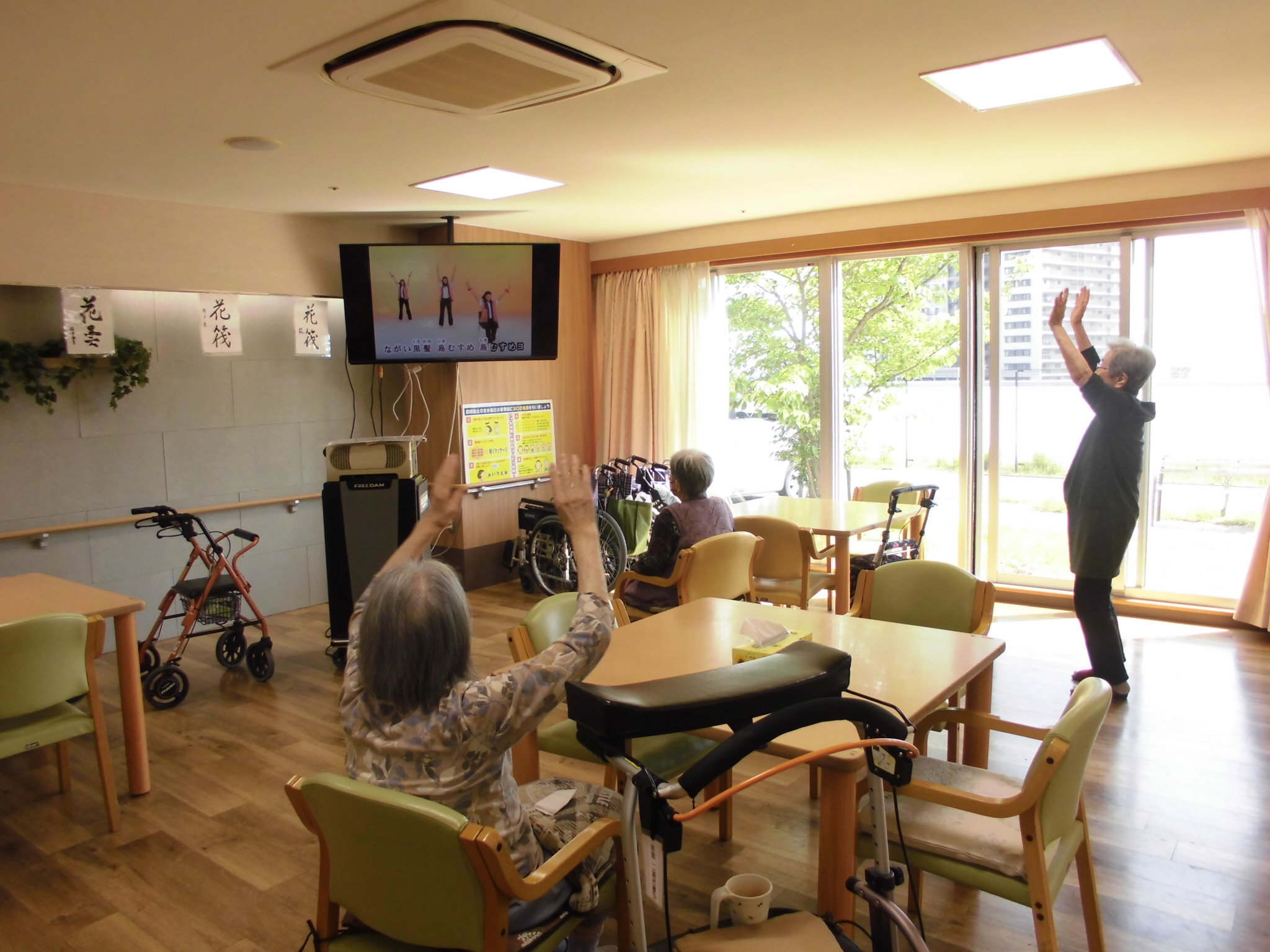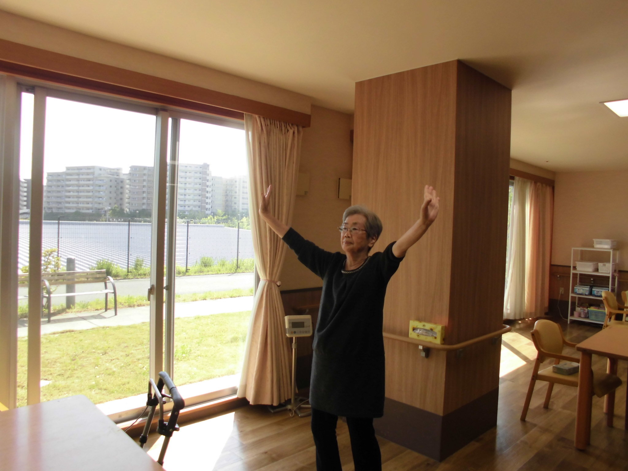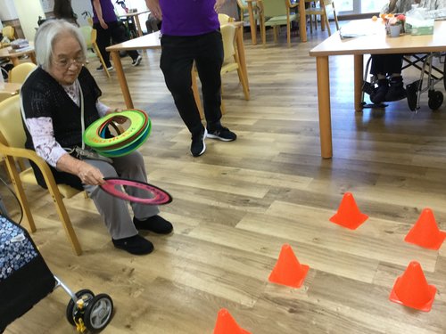 本日お届けするのはあったかい小春日和での機能訓練のひとコマです。