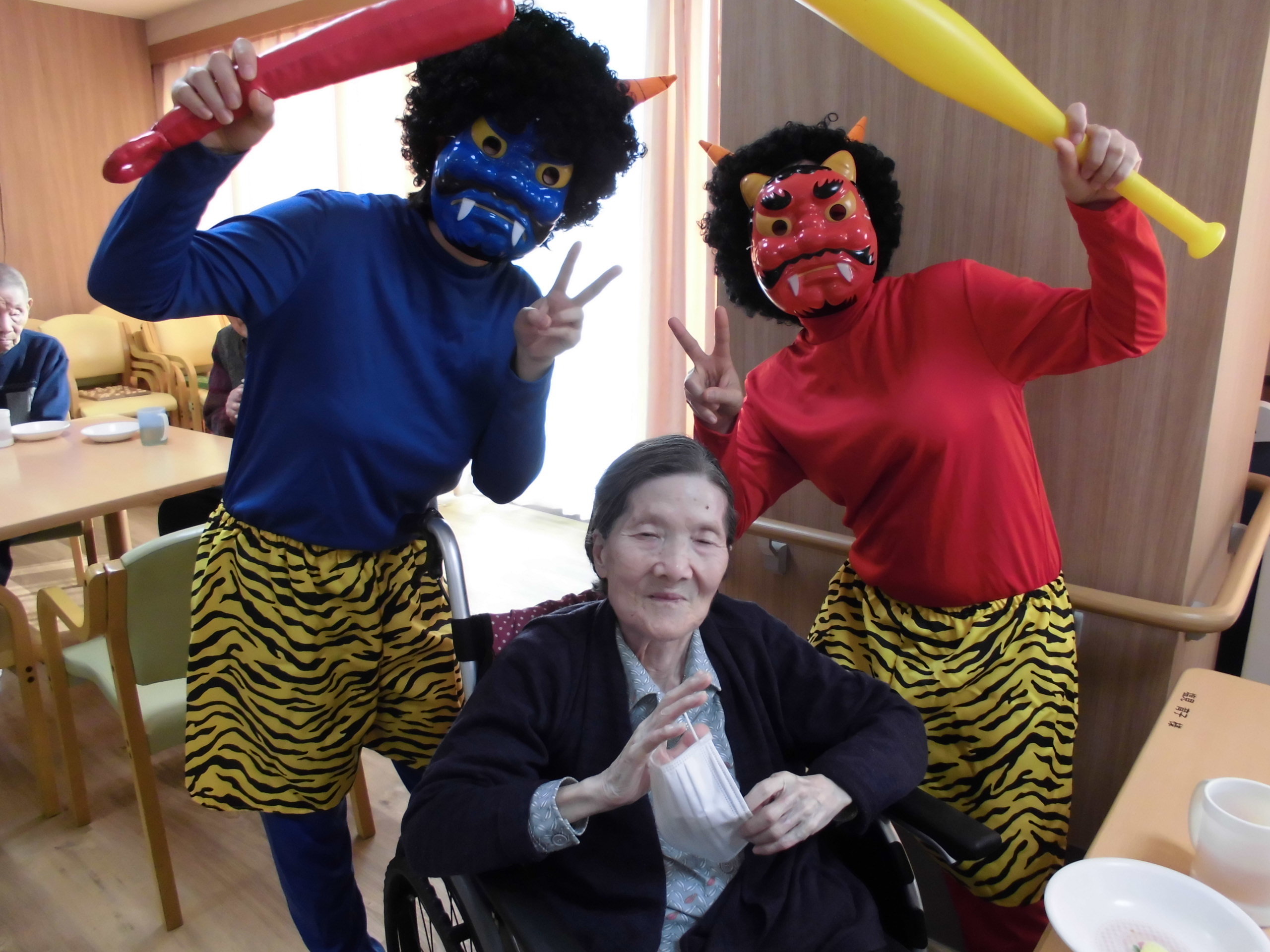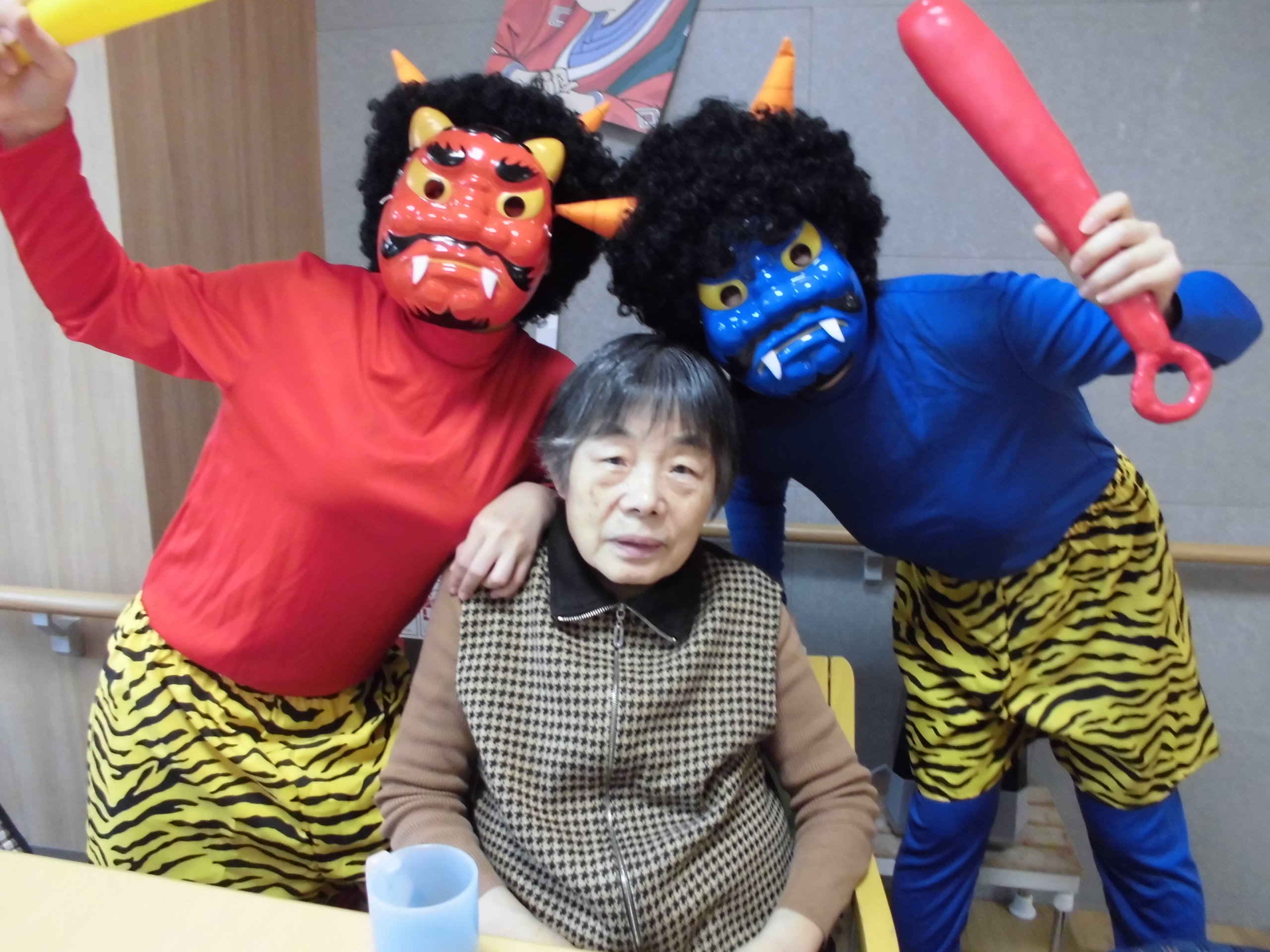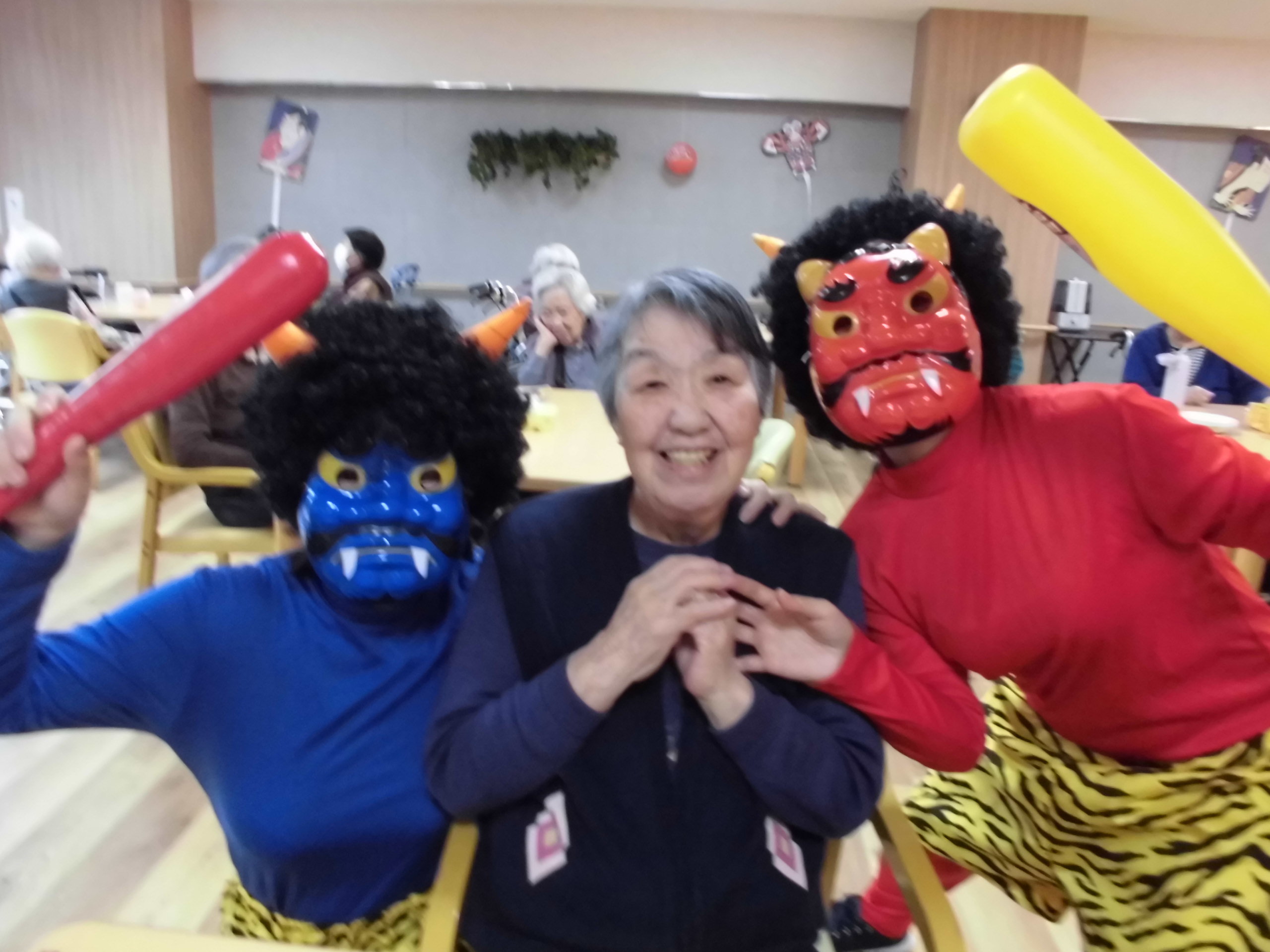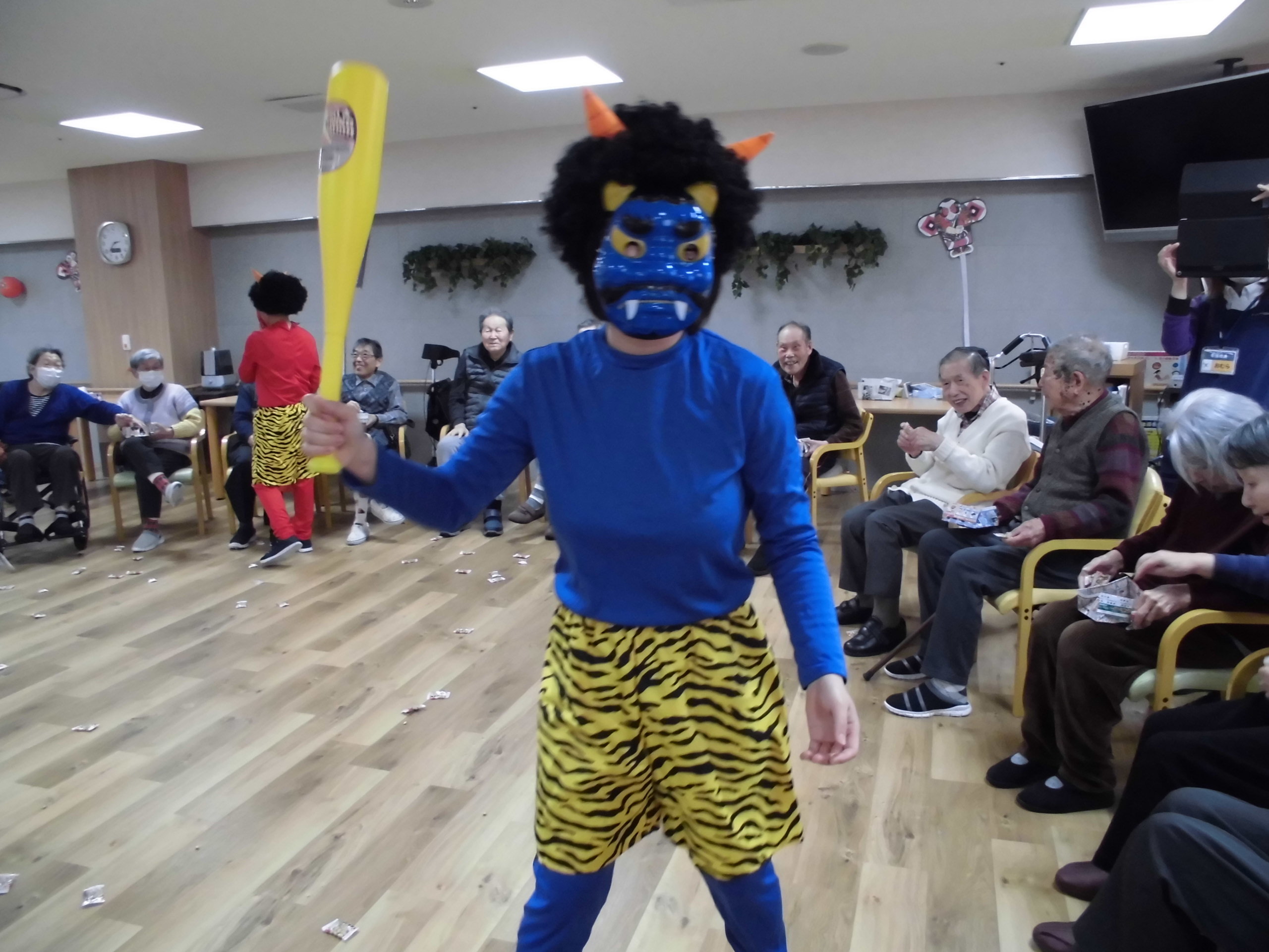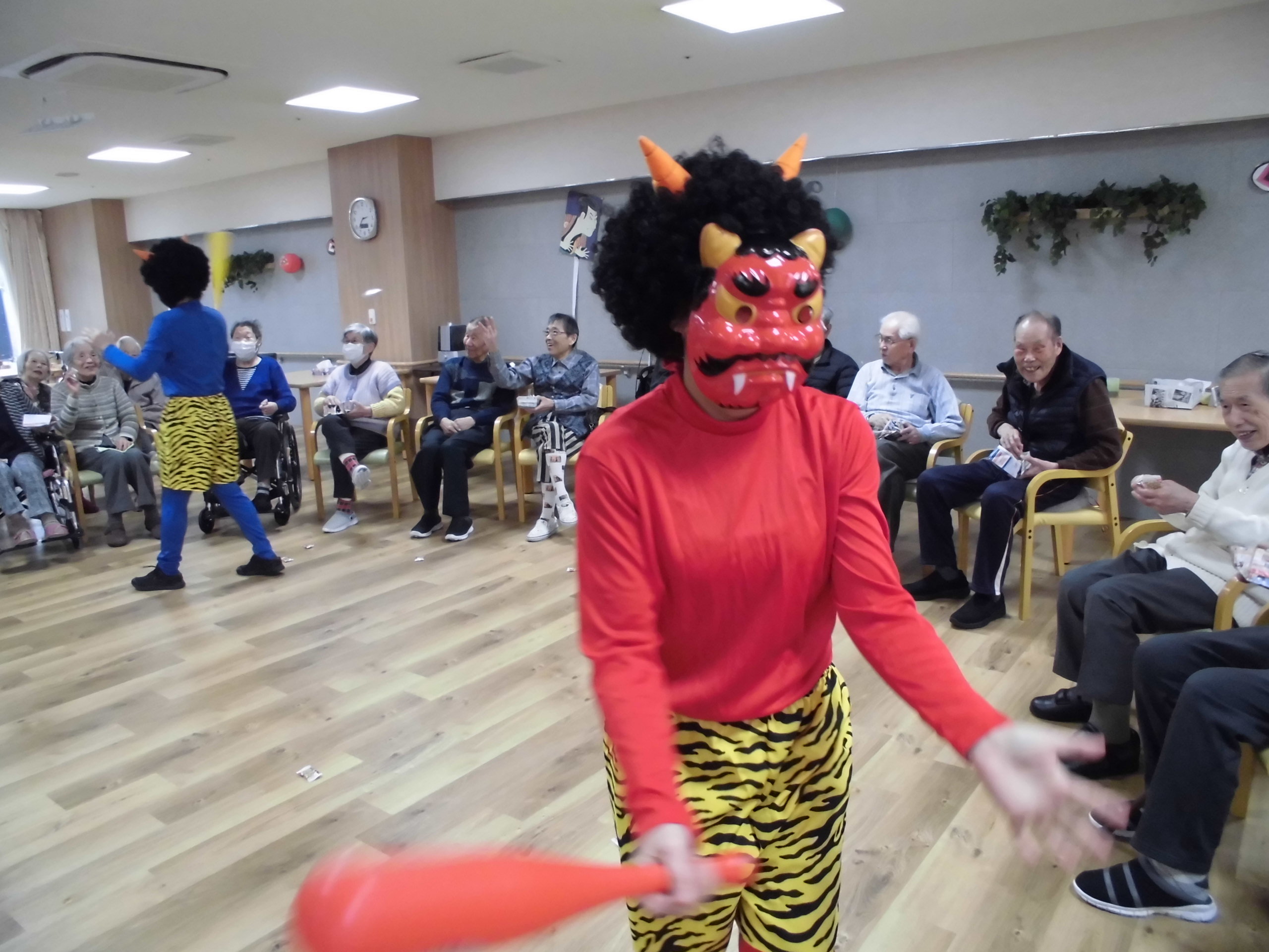皆さん楽しそうにされていました。スタッフが鬼に扮した格好しています。
