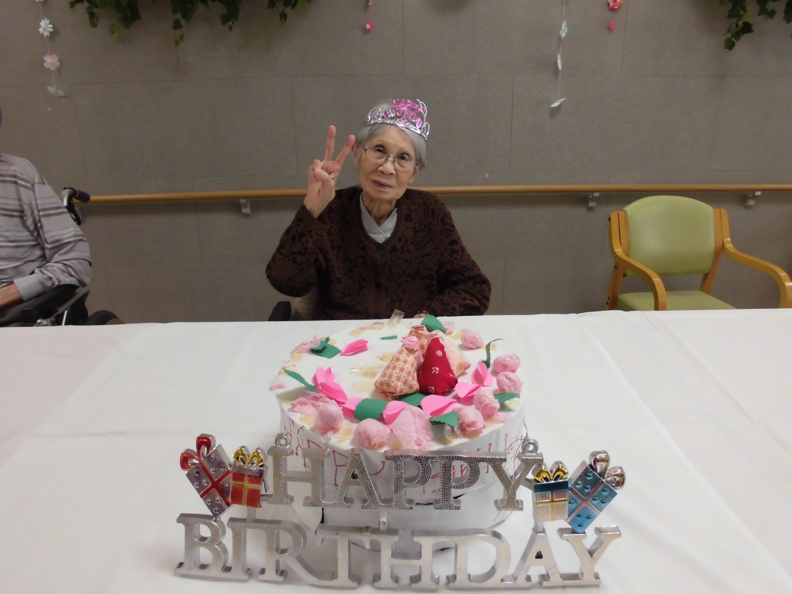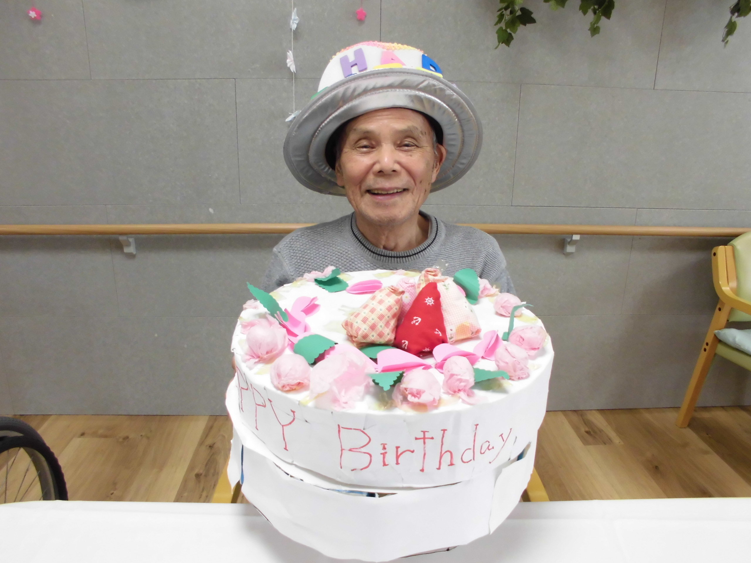毎月その月の誕生日のご入居者の方をスタッフとご入居者のと一緒にお祝いをさせていただいています。
