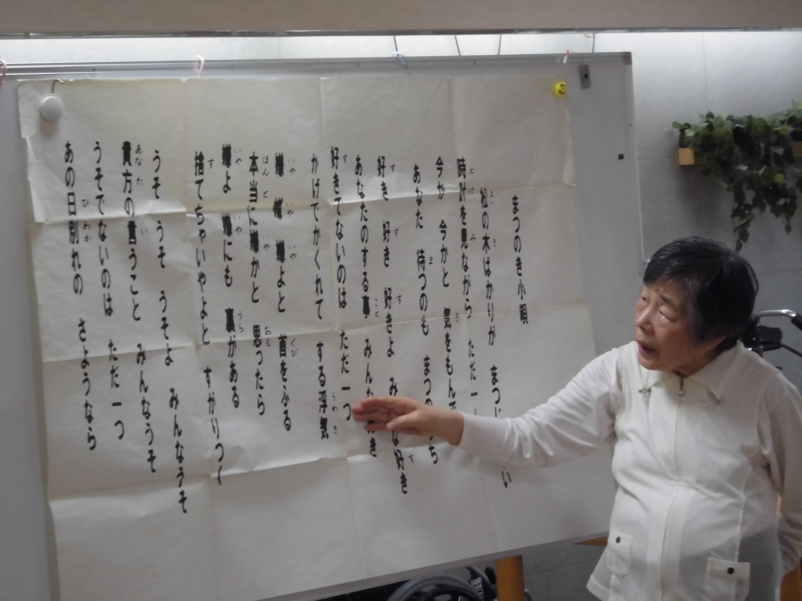曲は「いちばんはじめは」と「まつのき小唄」等を皆さんで歌いました。
