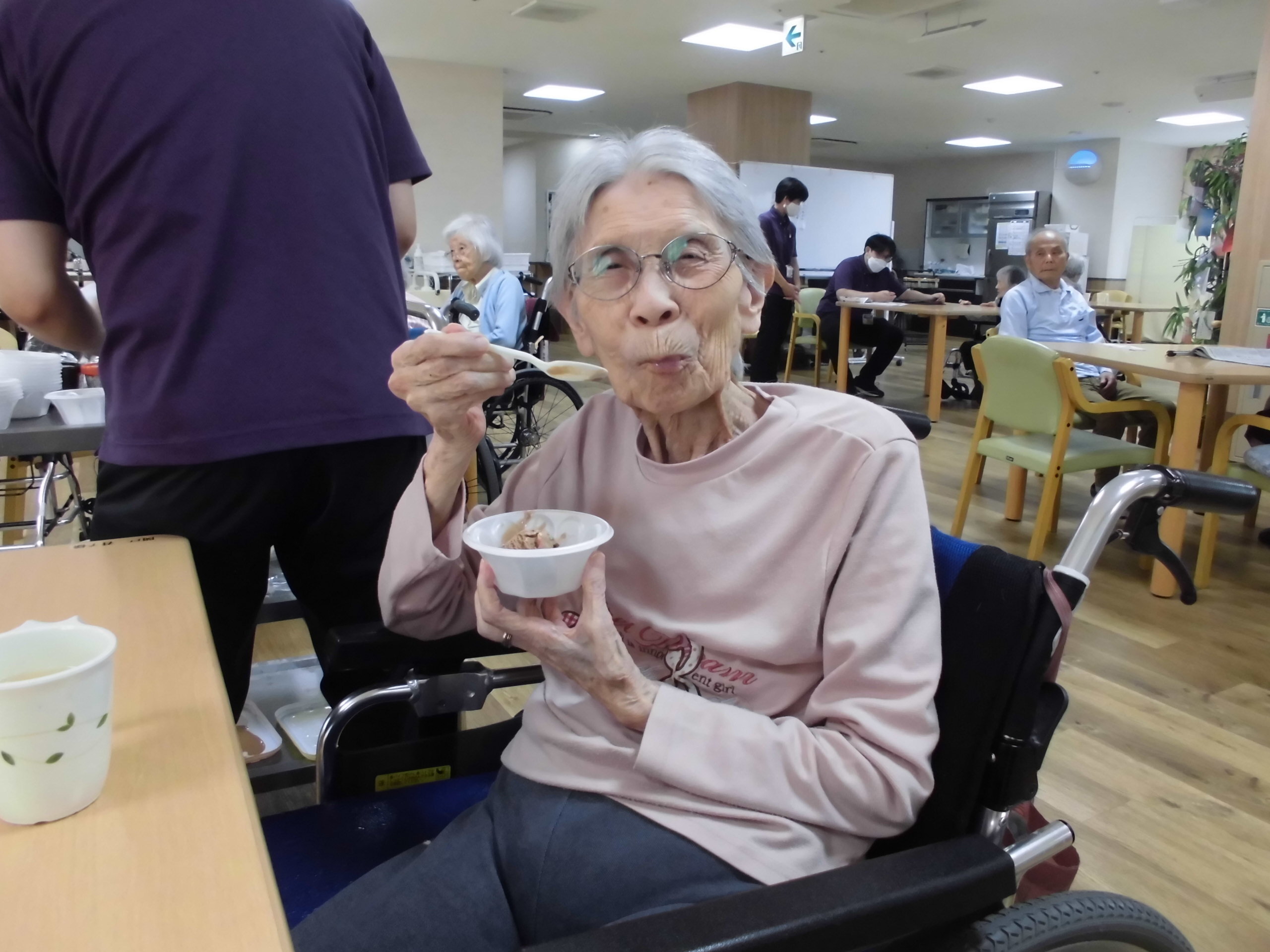 暑くなってきましたのでご入居者様のリクエストもあり、アイスクリームのおやつレクを行いました。
