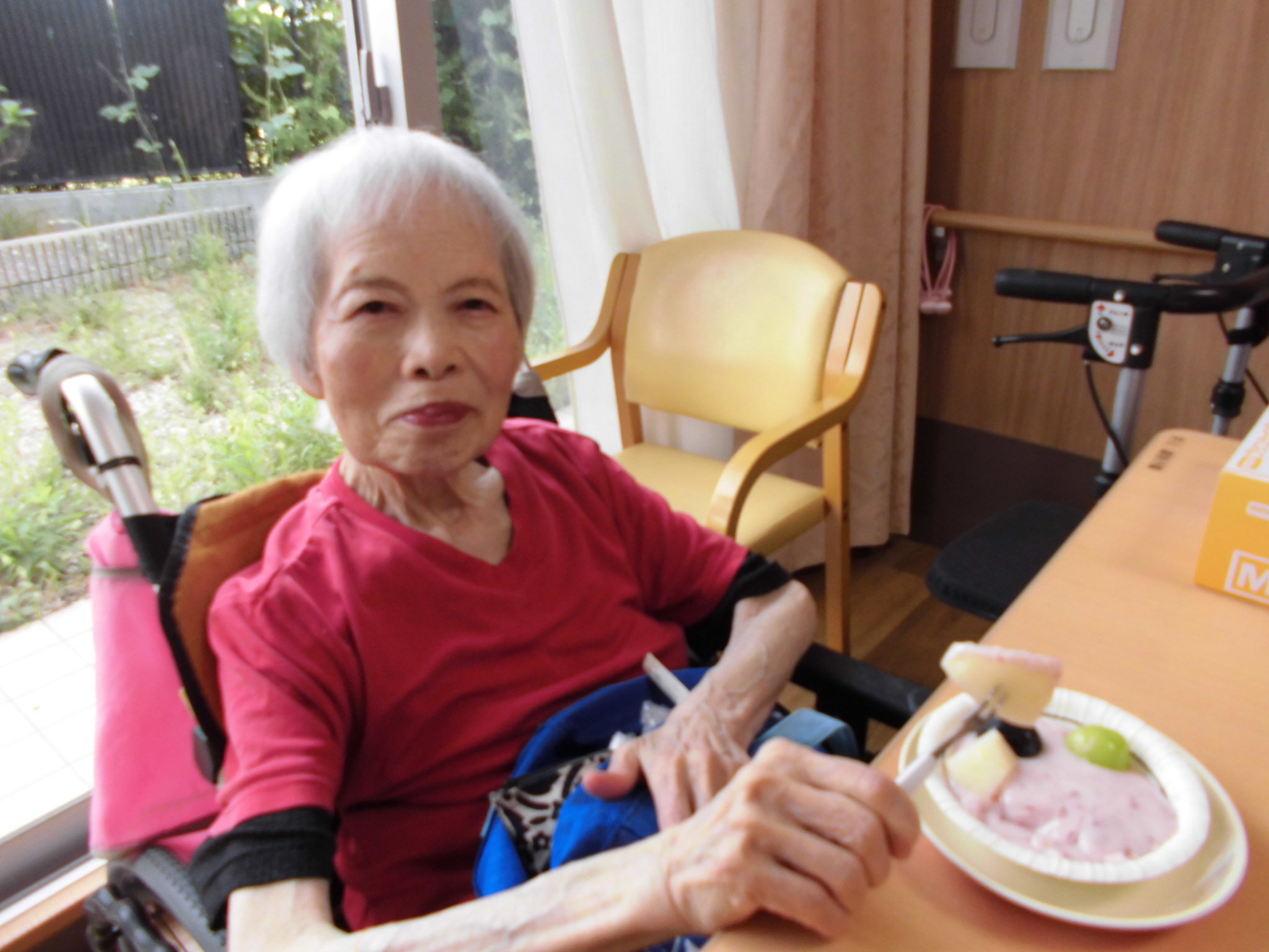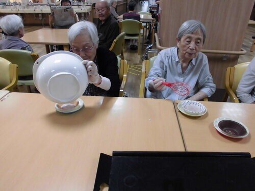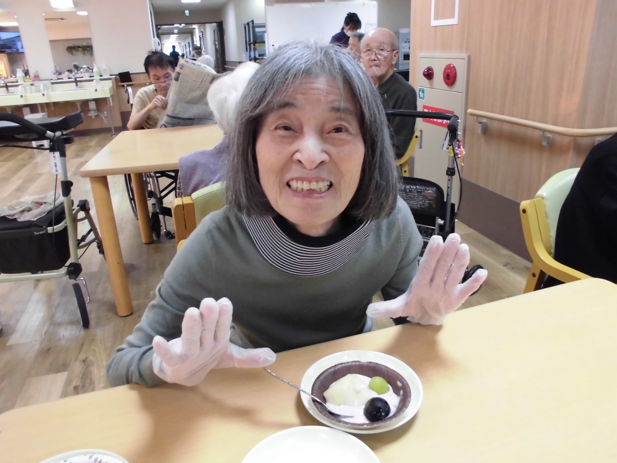 今月は久しぶりおやつレクをさせて頂きました!今回作ったのはフルーツ入りのヨーグルトです!!
