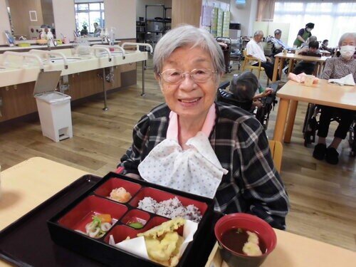 ちなみに私は好きなものは最後に食べる派です。こちらのご入居者みたいに海老天とだし巻き卵は最後にいただきました♪
