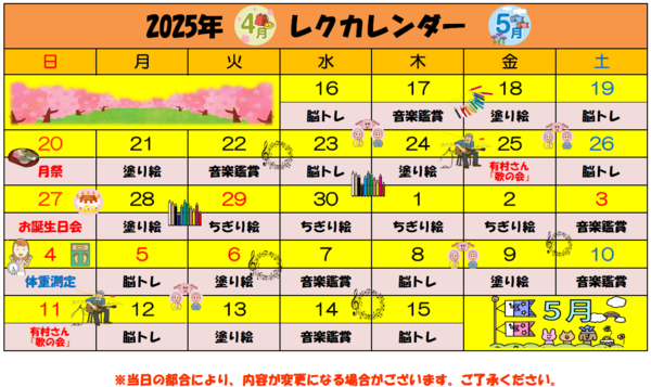 こちらからもレクカレンダーをご覧いただけます!(^^)!