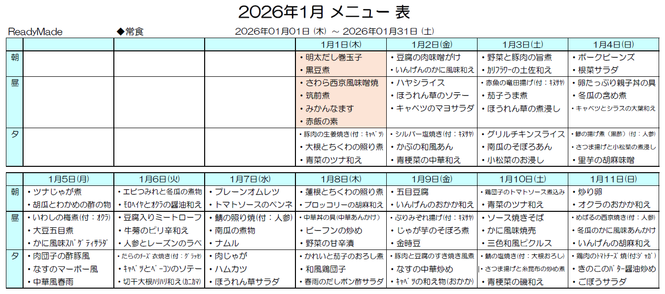 こちらからも献立表【1/1~1/31】をご覧になれます(^^♪