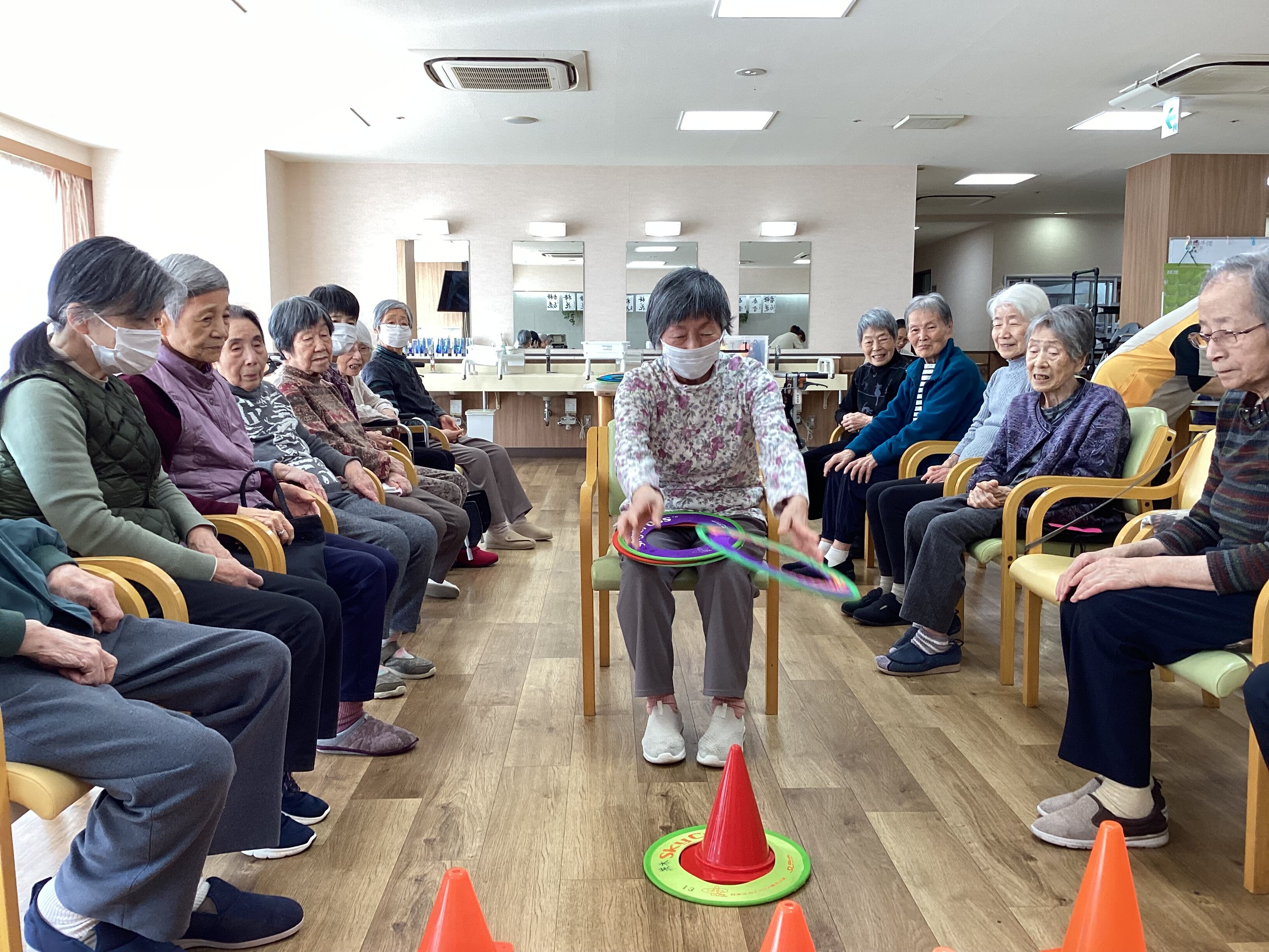 今回紹介させて頂くのは日々レクの 輪投げ です!! ではその様子をお伝えします。
