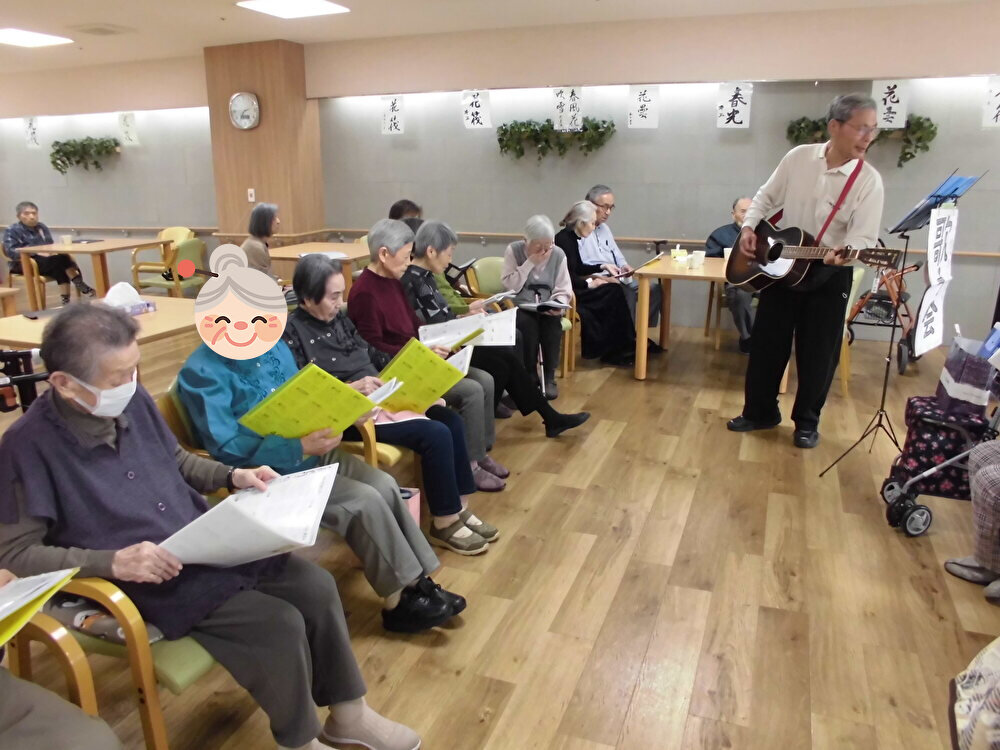 皆さま、「懐かしい。」と言いながら、ギターの弾き語りに合わせて、スラスラと歌を歌われていました♪