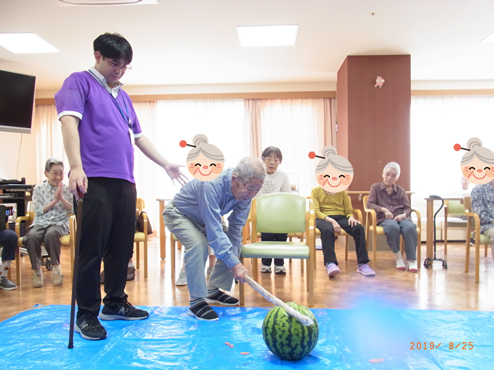 今回紹介するレクリエーションはすいか割です!!