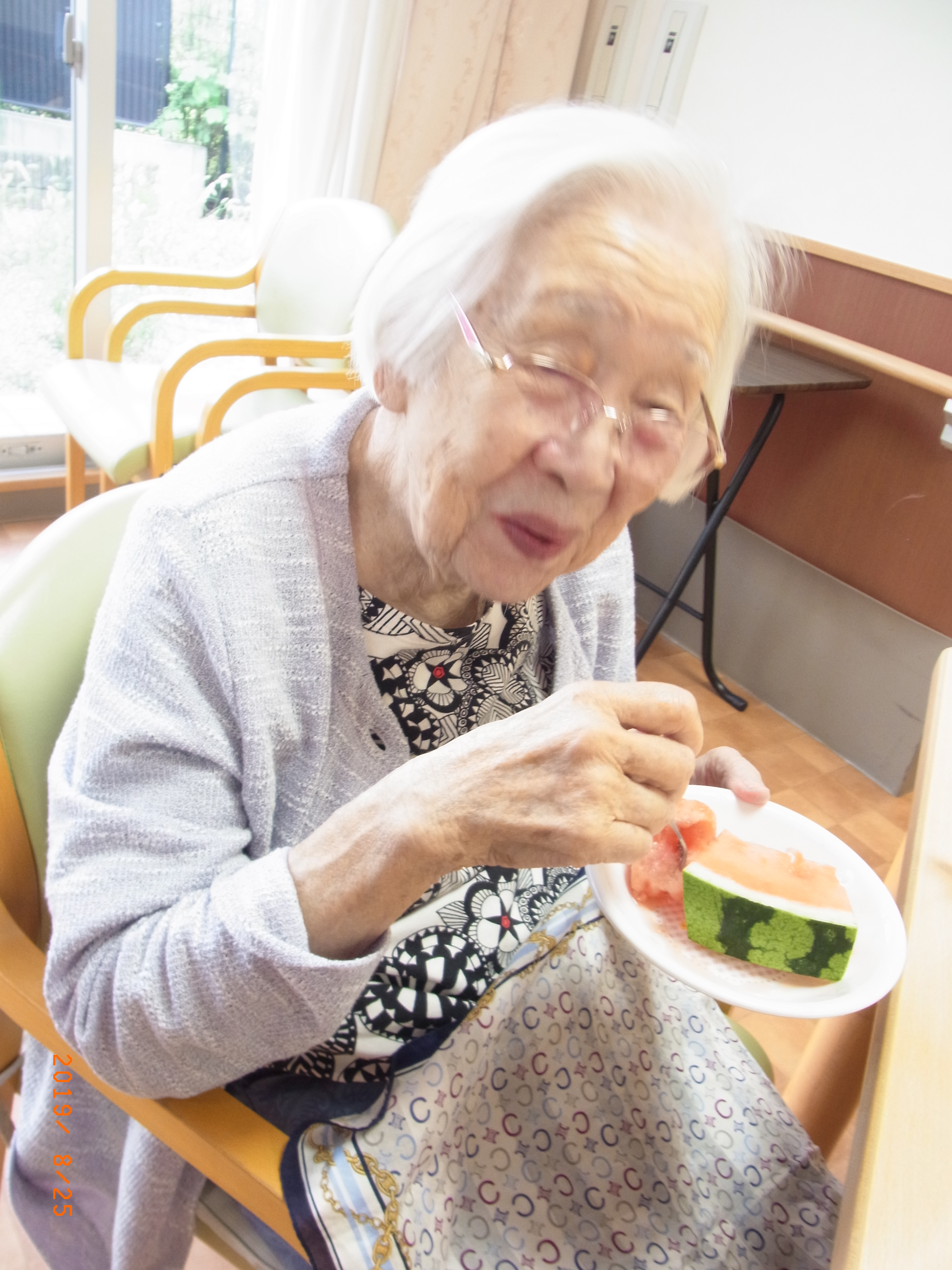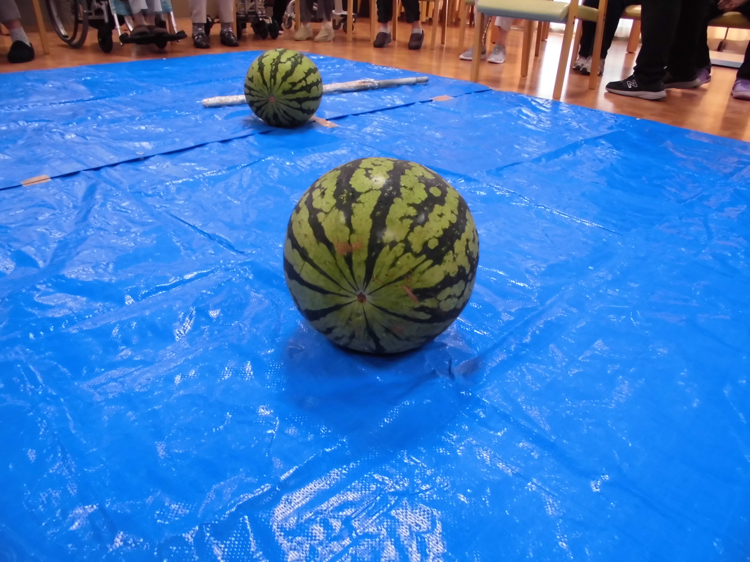 実際にこのすいかをご入居者の方に割って頂きました。