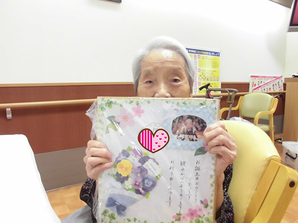 お誕生日の方々には職員が手作りの色紙をプレゼントさせて頂きました。