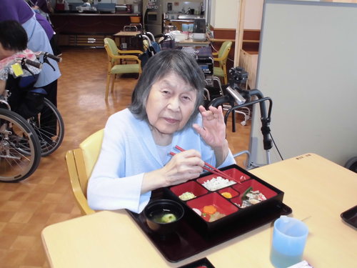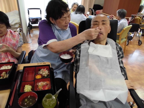 ヘルパーが食事介助にて食事されてます。美味しいと言われてました。