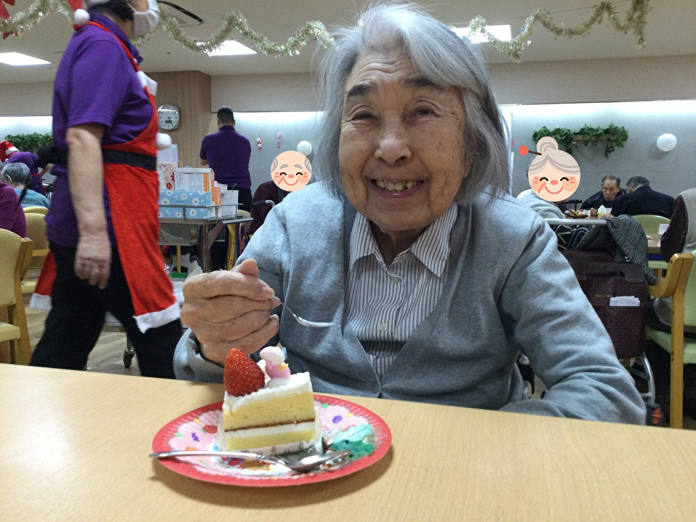 お祝いをさせて頂く際スタッフとご入居者の方と一緒に歌とお祝いの言葉とプレゼントをお渡しさせて頂き最後にケーキを召し上がって頂きました。