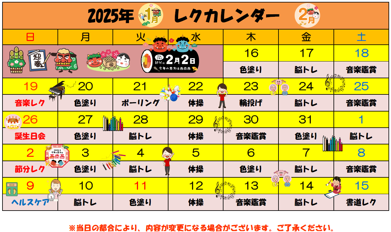 こちらからもレクカレンダーをご覧いただけます!(^^)!