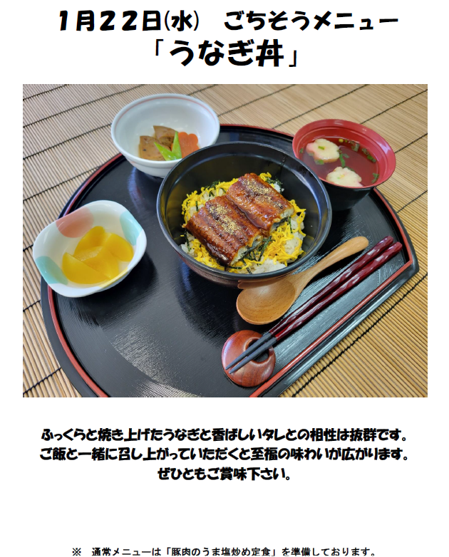 今週のおすすめは【ごちそうメニュー うなぎ丼】です!!