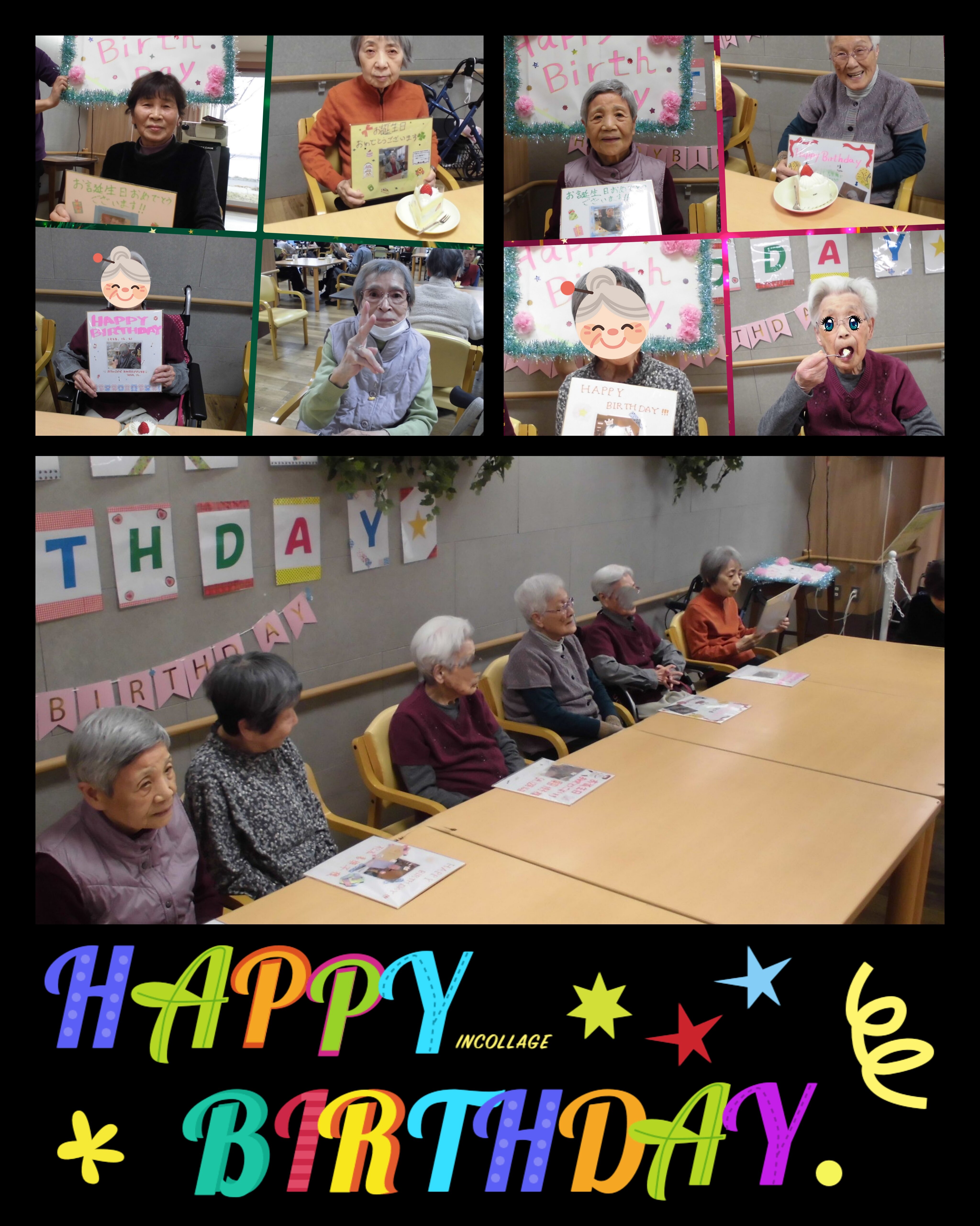 お誕生日の方へはケーキ―と職員手作りの色紙のプレゼントを行いとても喜んでいただけました(^^♪