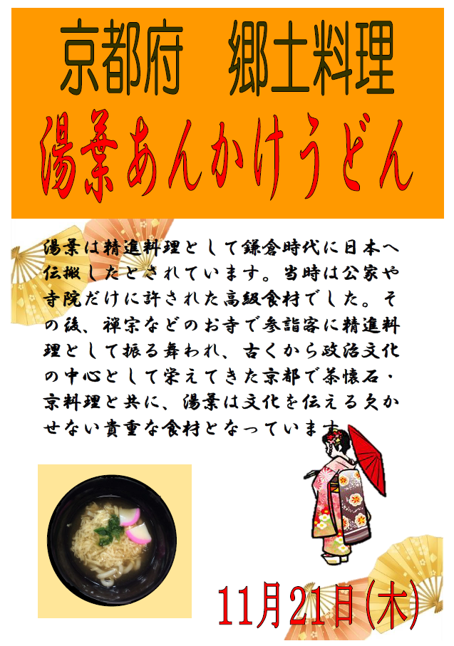 今週のおすすめは【京都府郷土料理 湯葉あんかけうどん】です!!