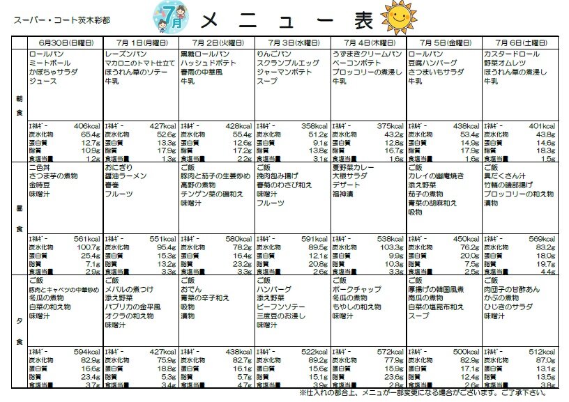 こちらからも献立表をご覧になれます(^^♪