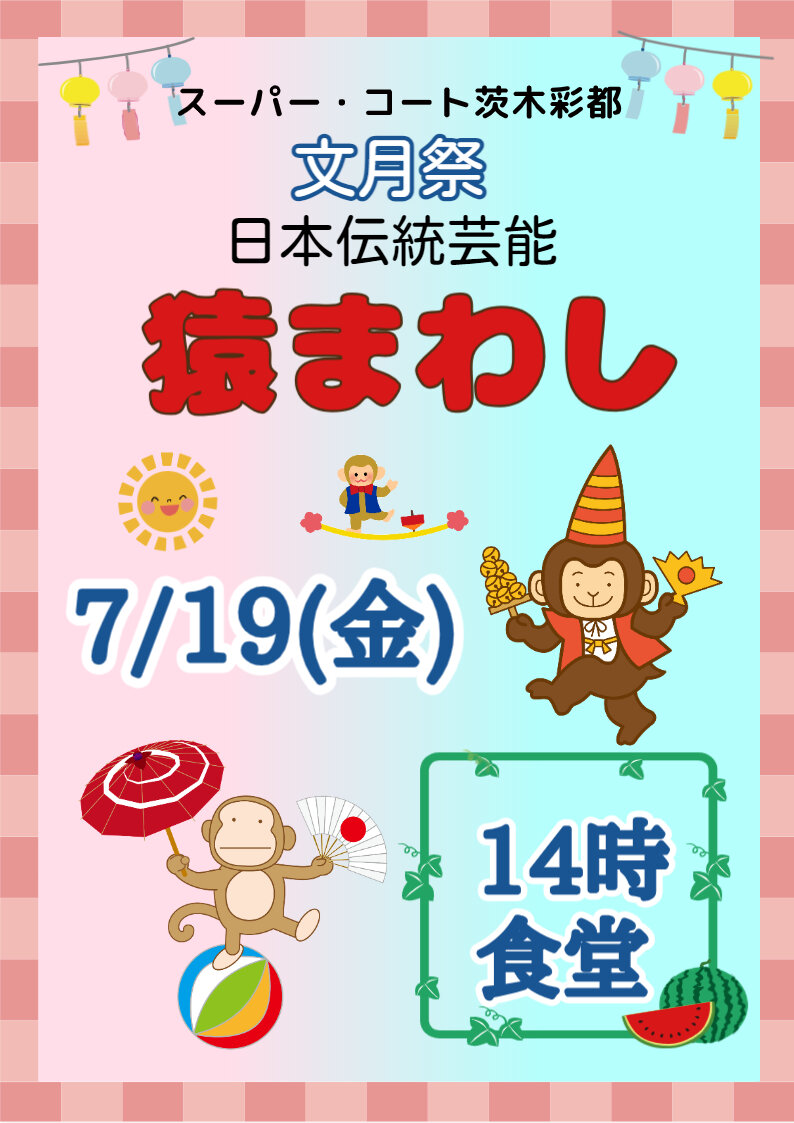 今回は7月 文月祭【猿まわし】の告知です。