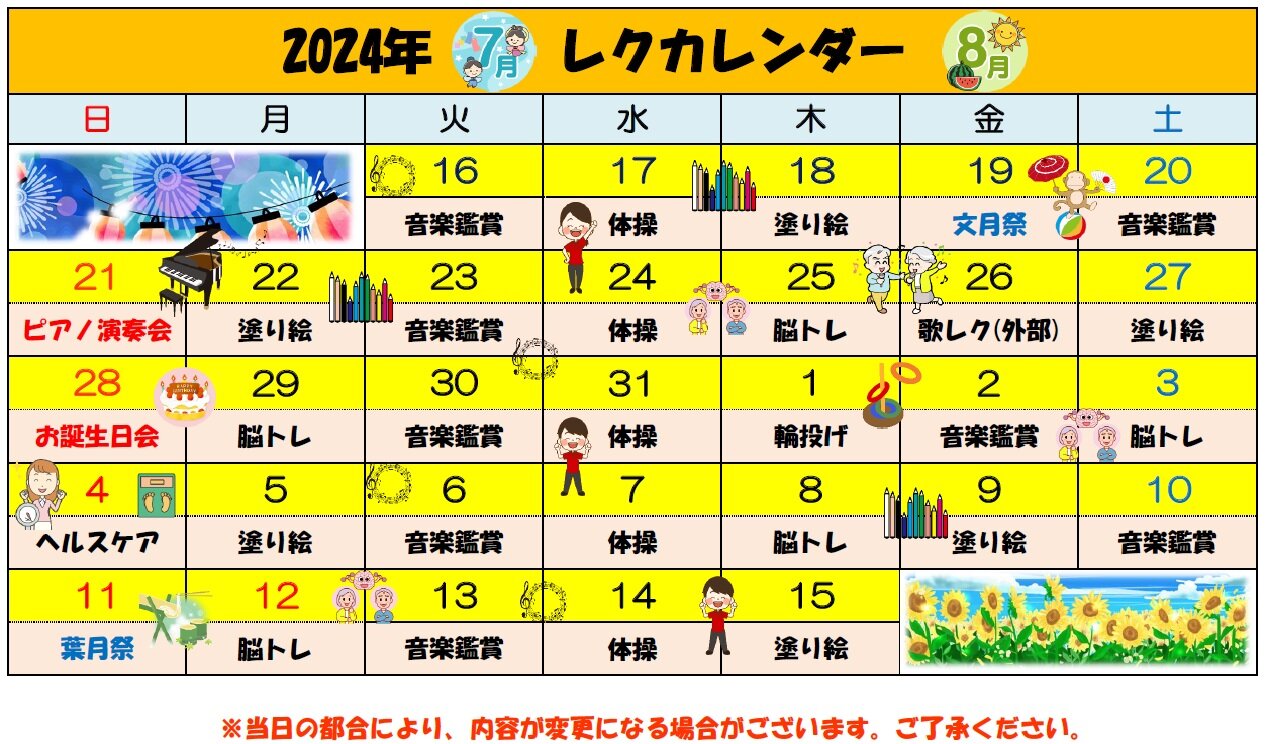 こちらからもレクカレンダーをご覧いただけます!(^^)!