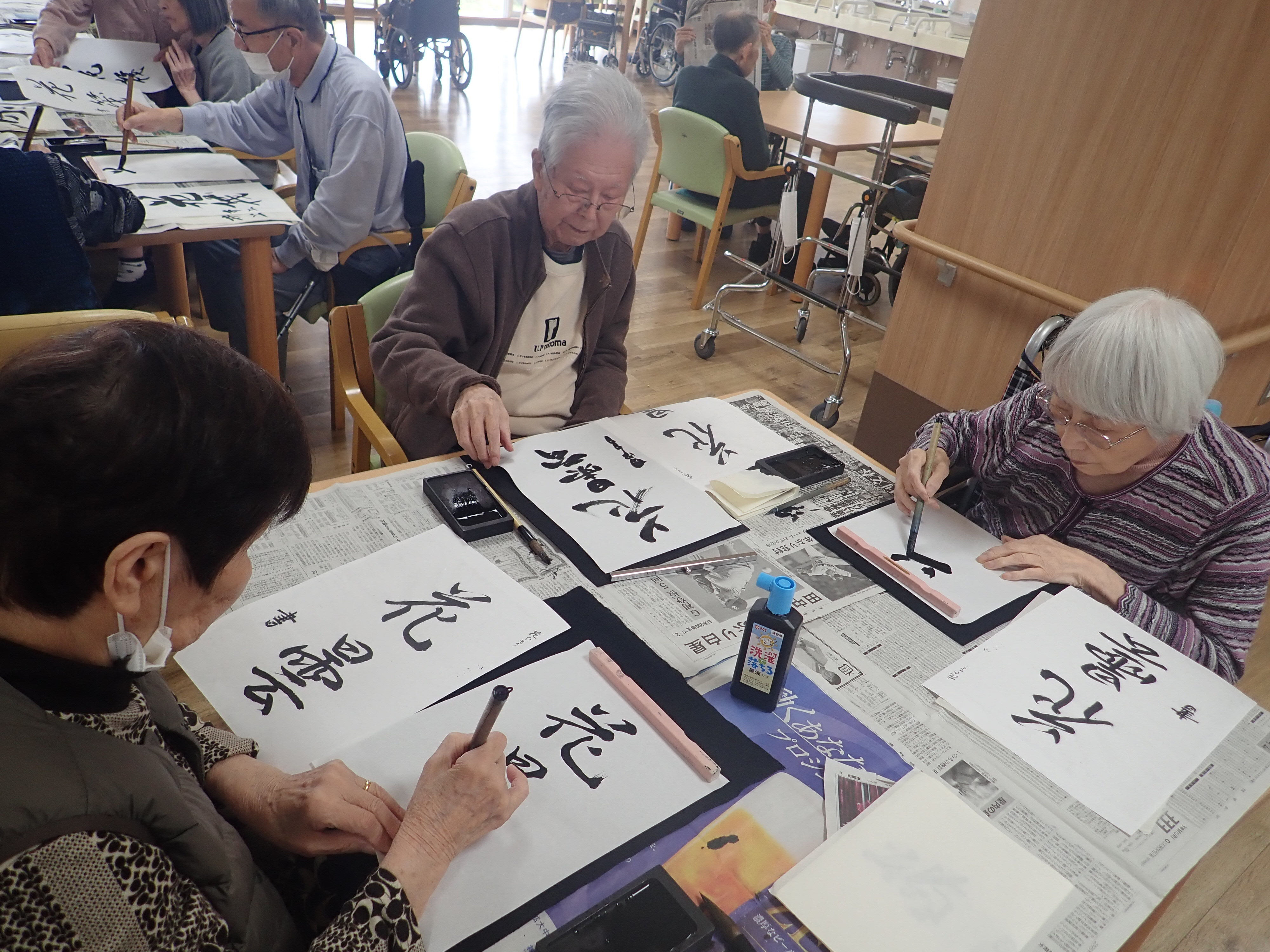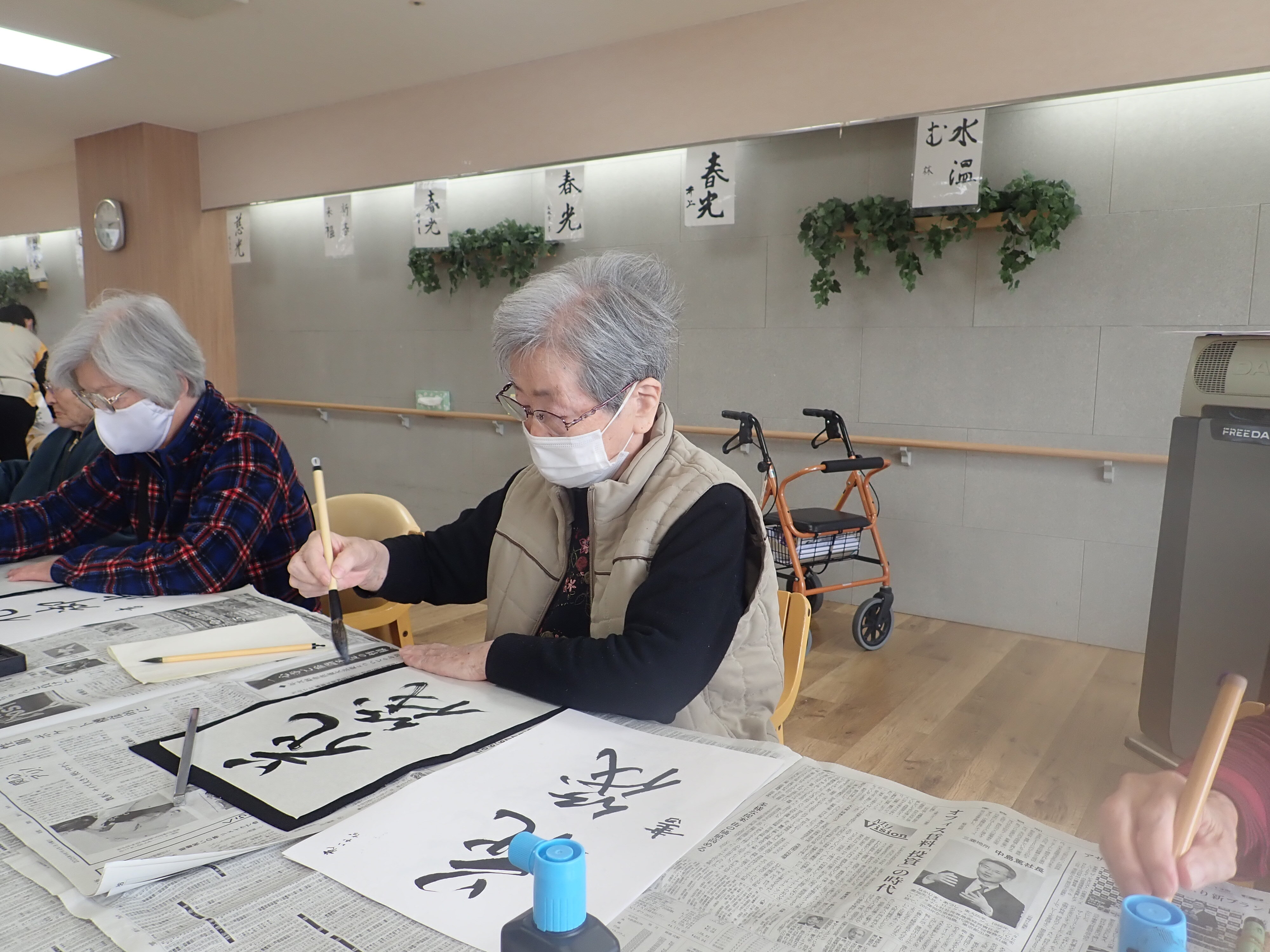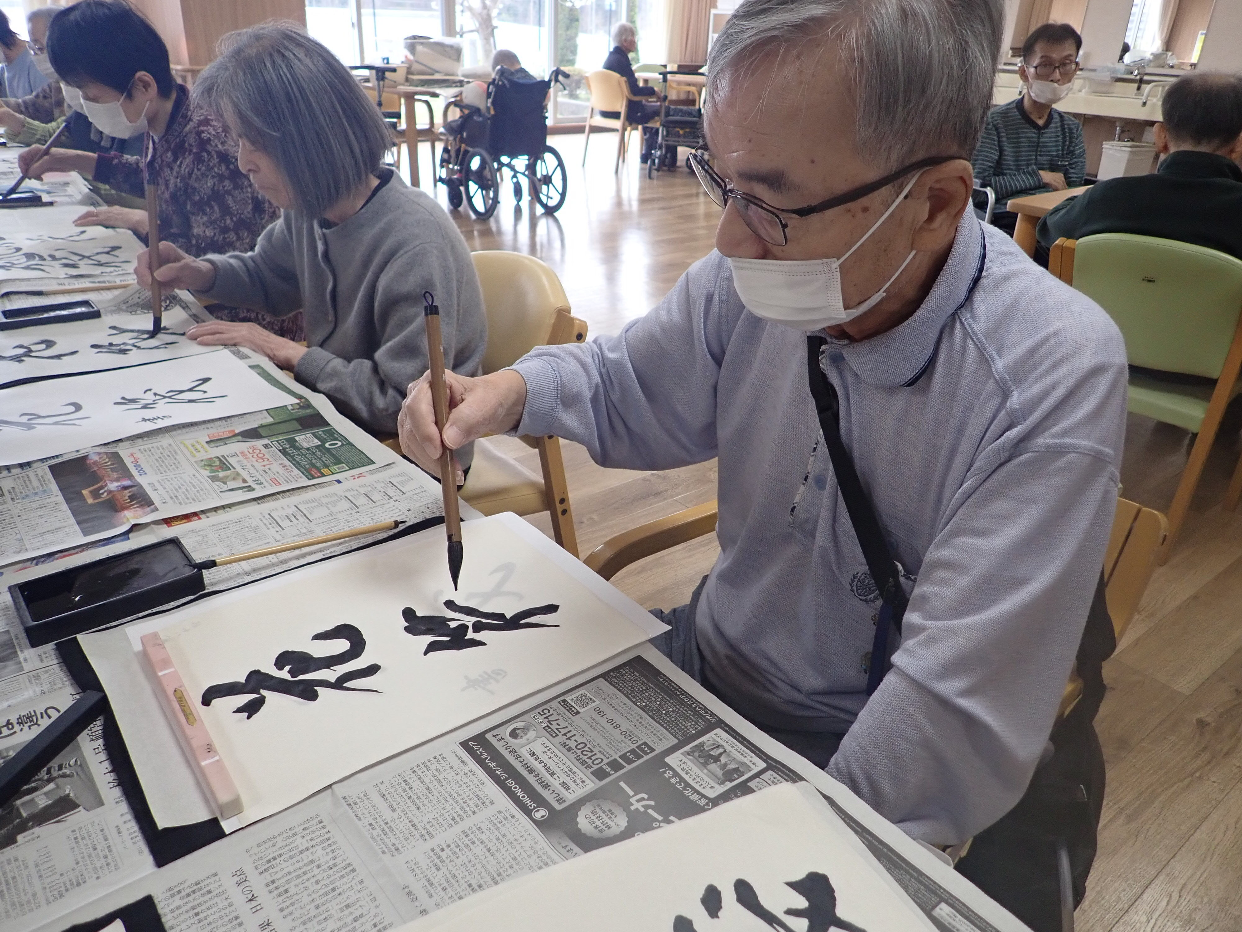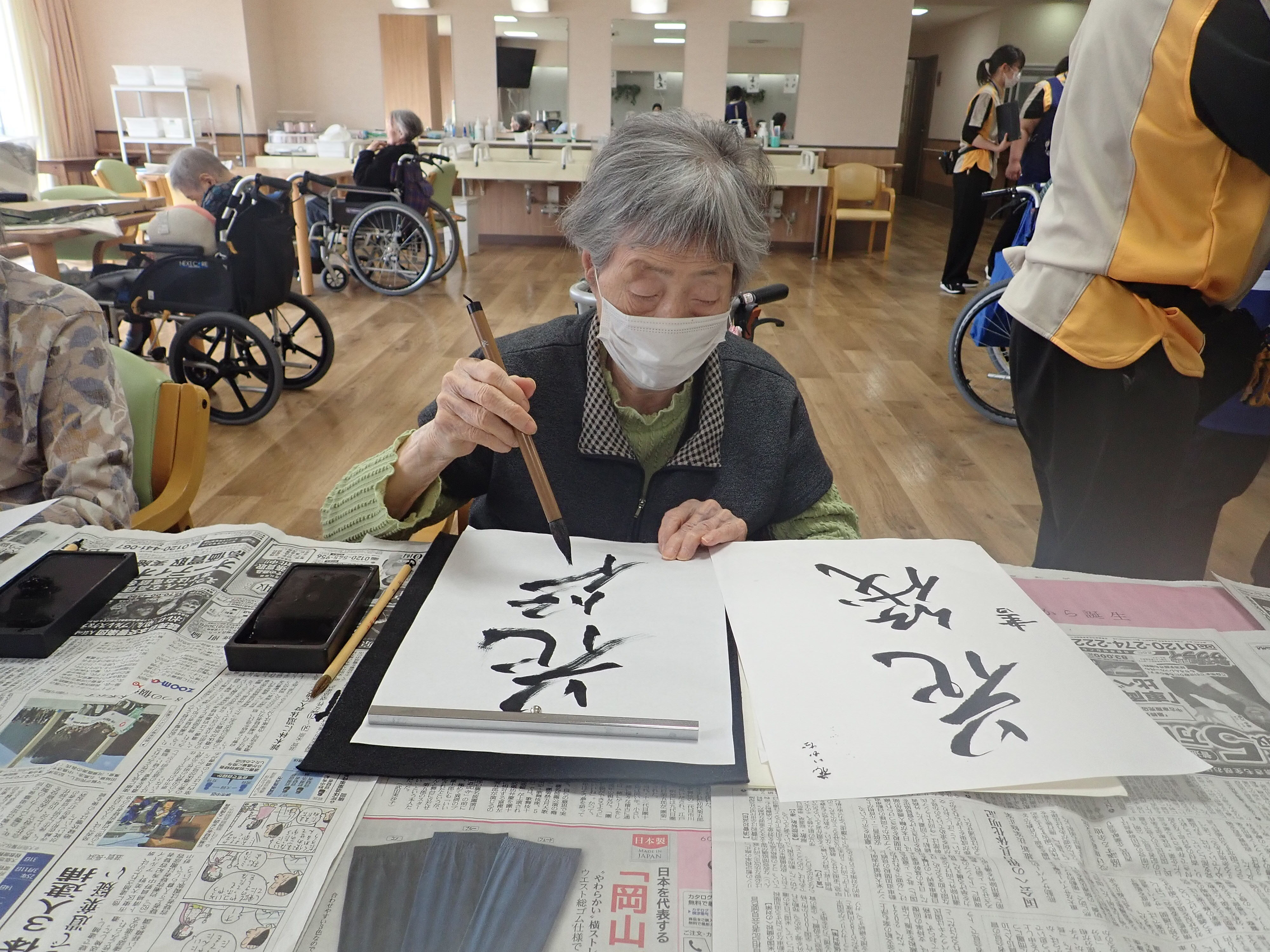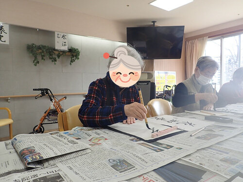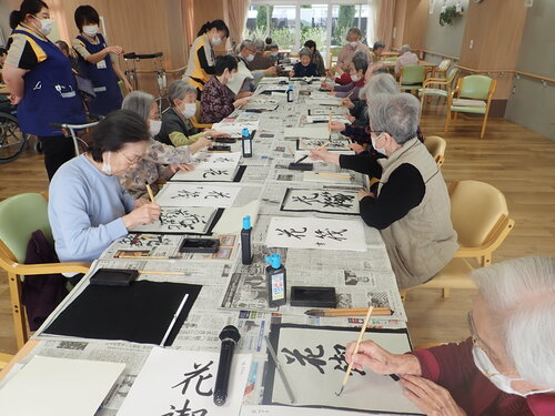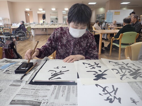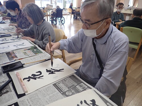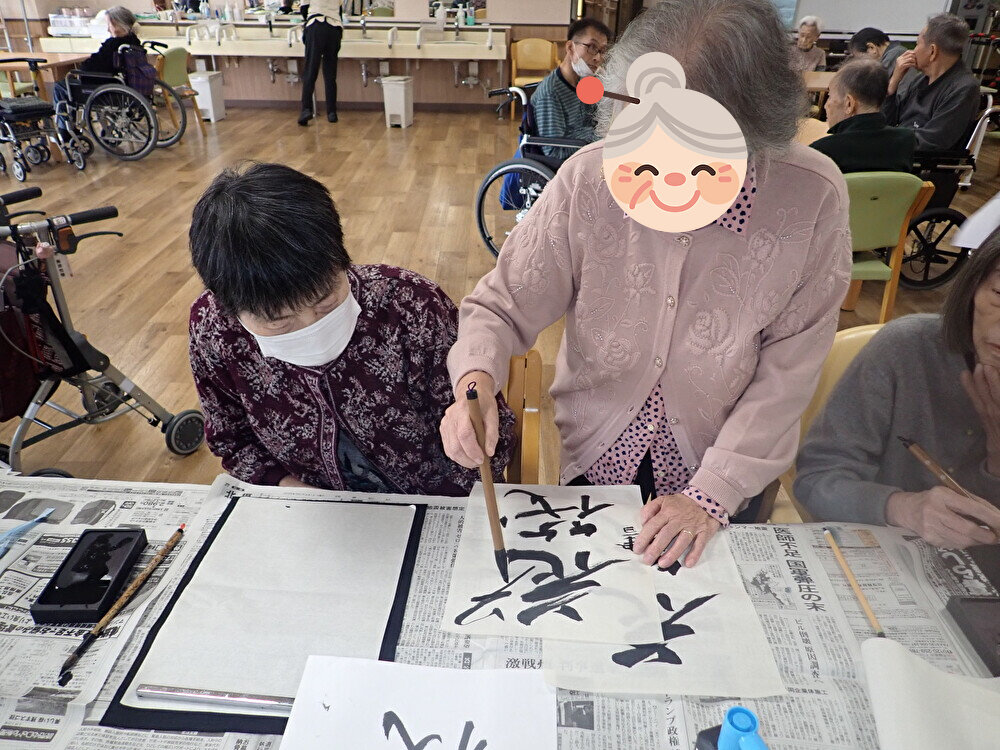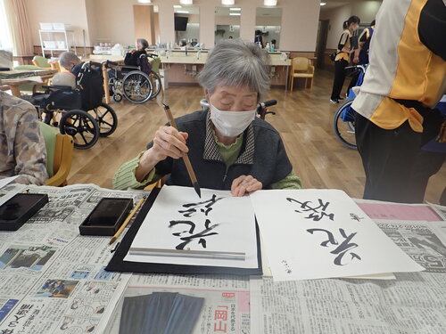 以前書道レクリエーションで皆様に書いて頂いた作品です!